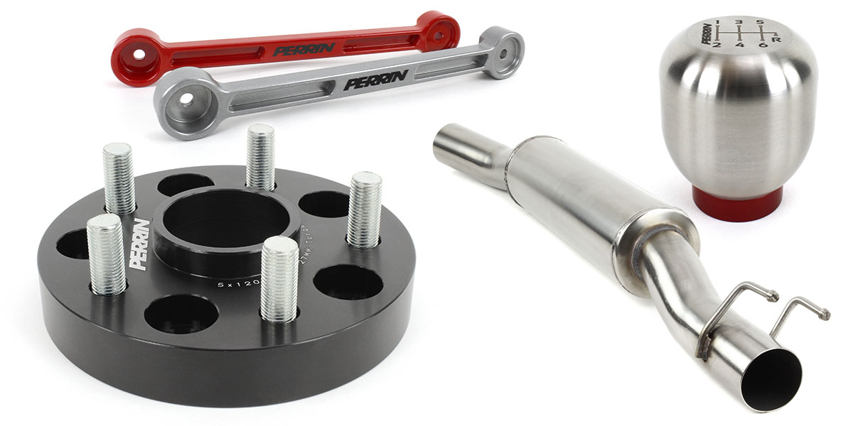 You probably know Perrin Performance for their Subaru parts, which is the majority of the parts they offer. Many of their smaller parts, such as shift knobs or battery tie downs, are very similar from brand to brand and they’re easy to redesign for a different platform.