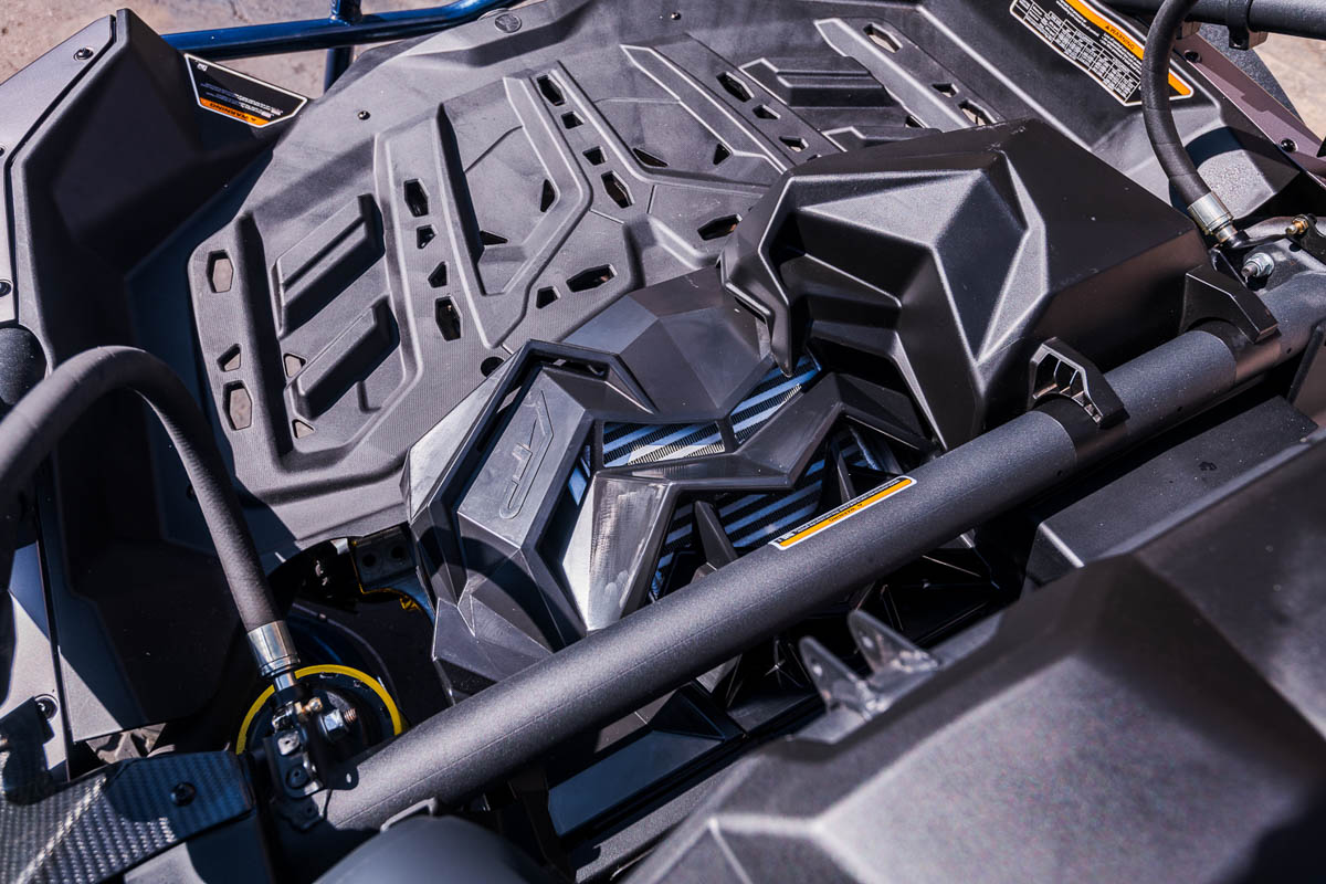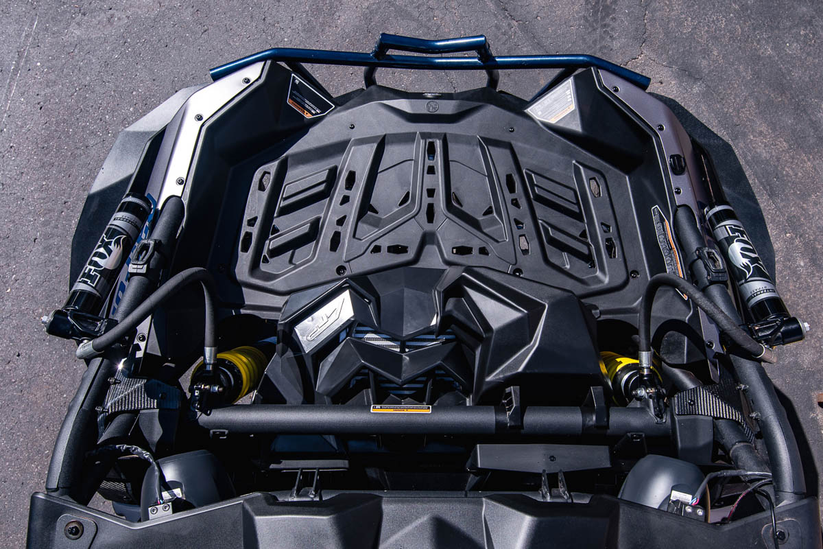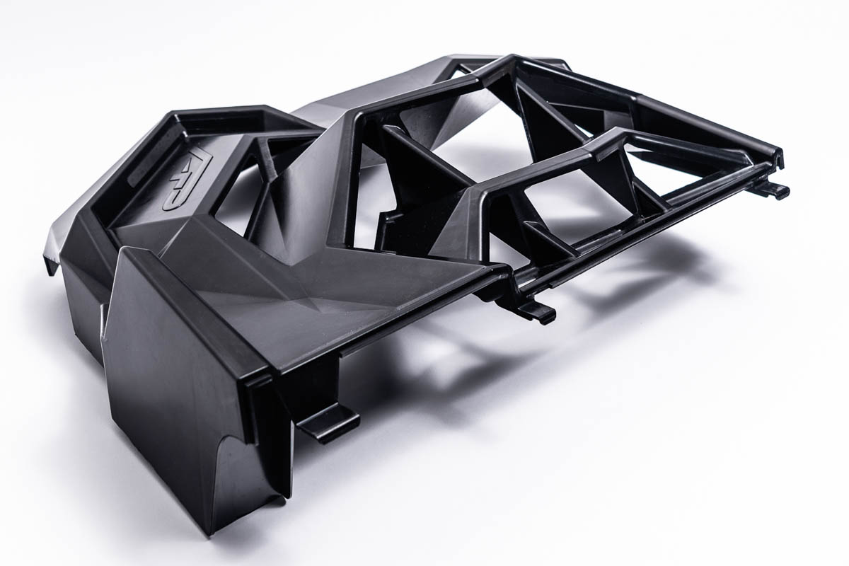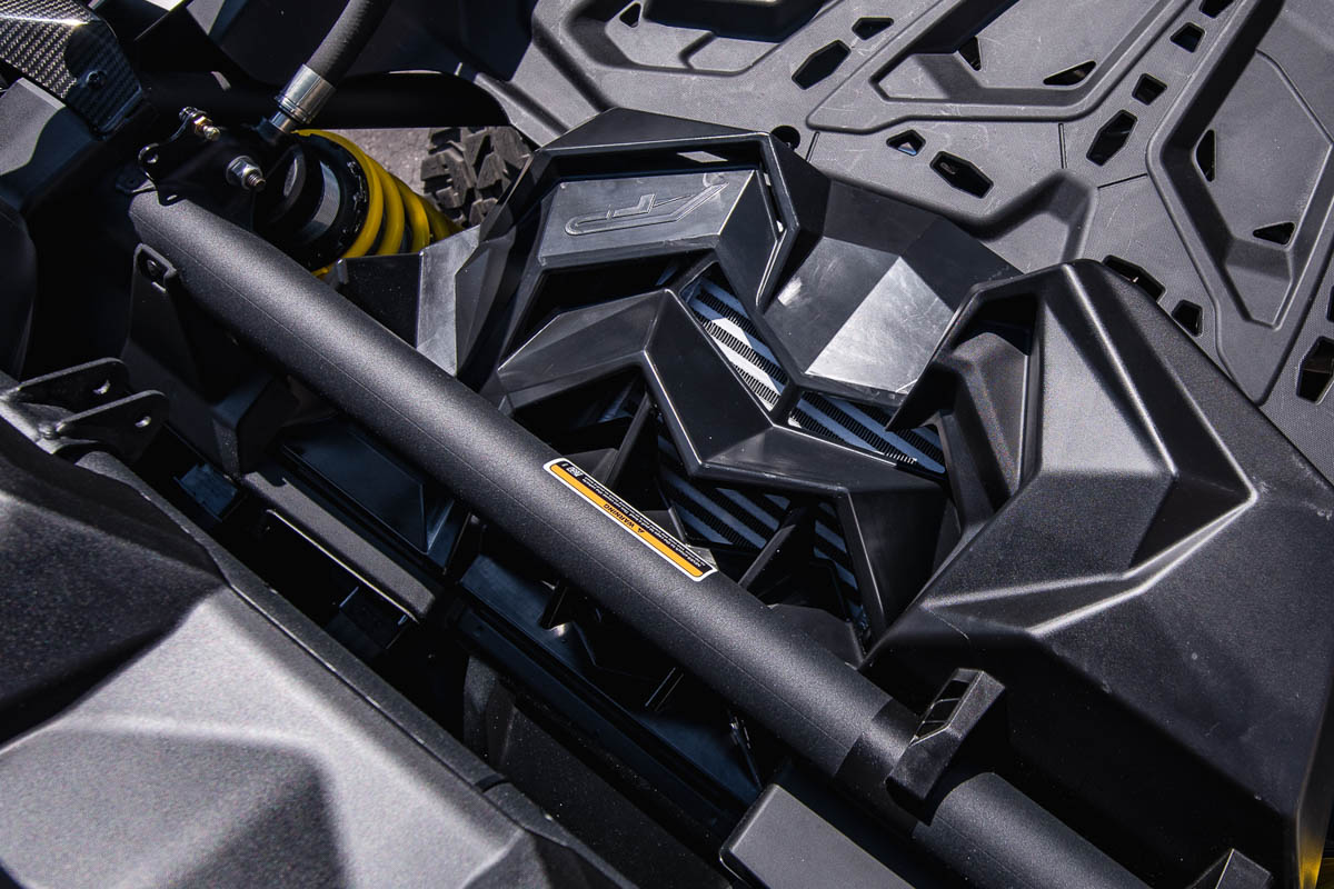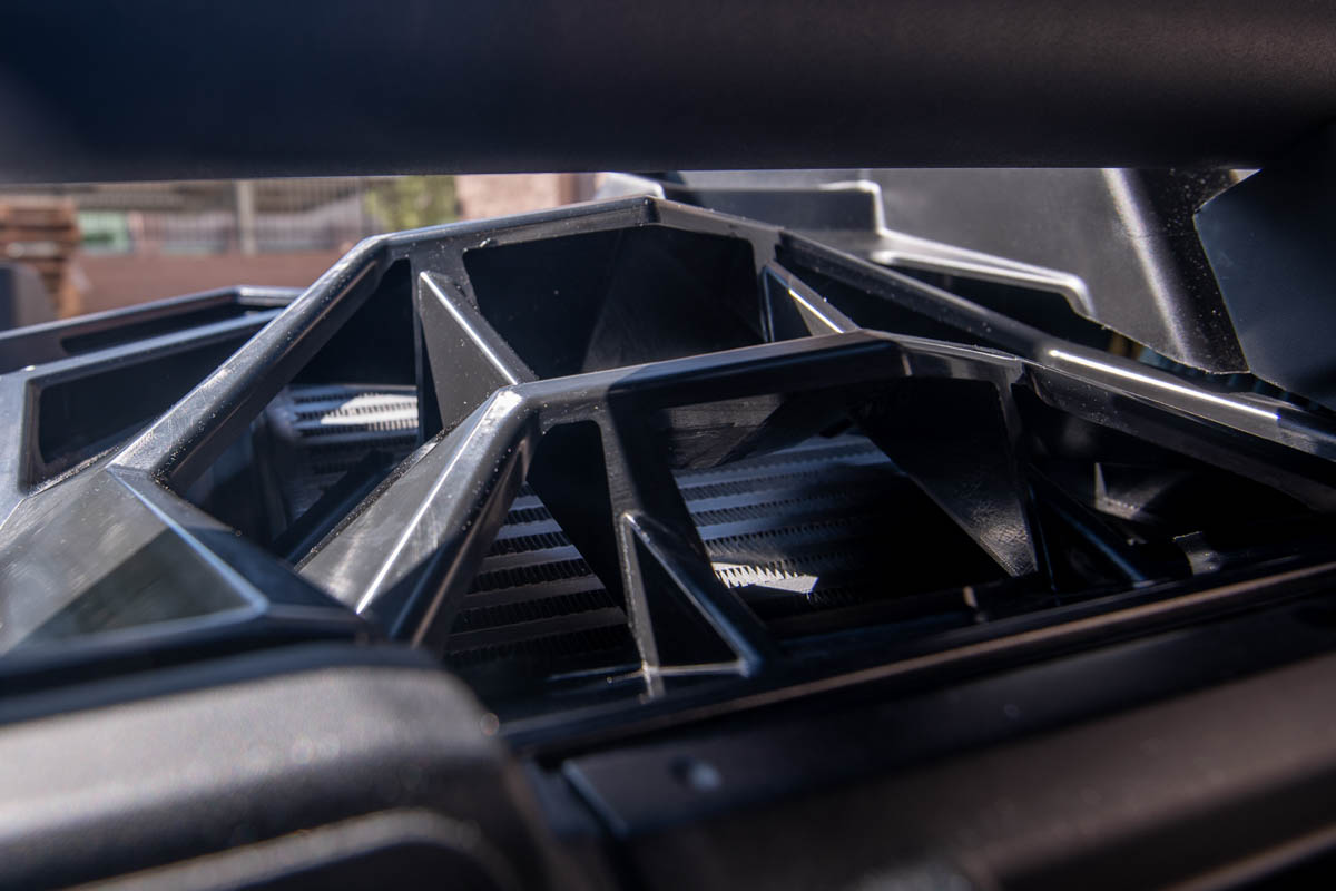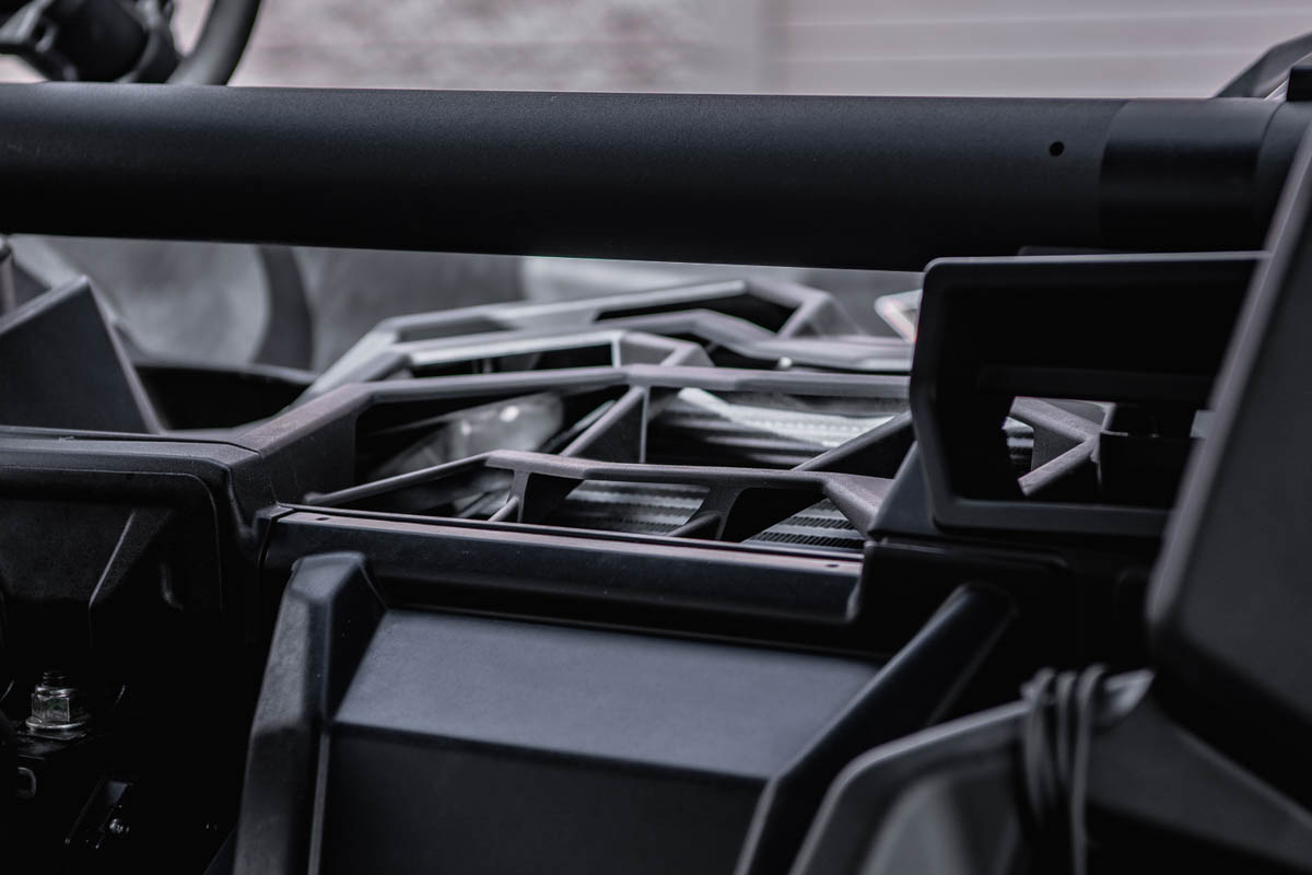 Turbochargers are great for increasing power in small engines as Can-Am has done with the X3, but the nature of a turbocharged system causes extremely high air temperature entering the engine. The job of the intercooler is to cool off the compressed air before it enters the engine. In the case of the X3, the intercooler is mounted flat and relies on an air duct/air scoop to push air through the intercooler. Unfortunately, the OEM air duct isn’t very efficient at pushing air through the intercooler, so Agency Power took it upon themselves to develop a solution to this problem.