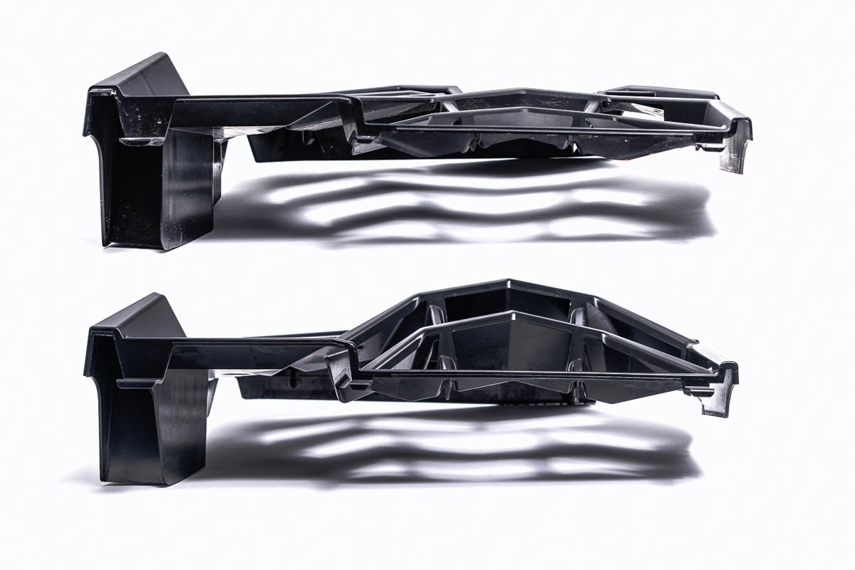 The new Agency Power intercooler duct takes the OEM design and makes it more aggressive. The size of the center scoop from 1.5 inches to 4 inches tall and each side scoop from 1.5 inches to 2 inches with all keeping a 4-inch width. The intercooler duct cover increases the inlet air flow by over 40% from 32 cu-in to 46 cu-in. The whole system is designed as a direct OEM replacement and includes everything you need for a smooth and simple install. The result is more airflow to the intercooler, resulting in lower charge air temperatures and more power!