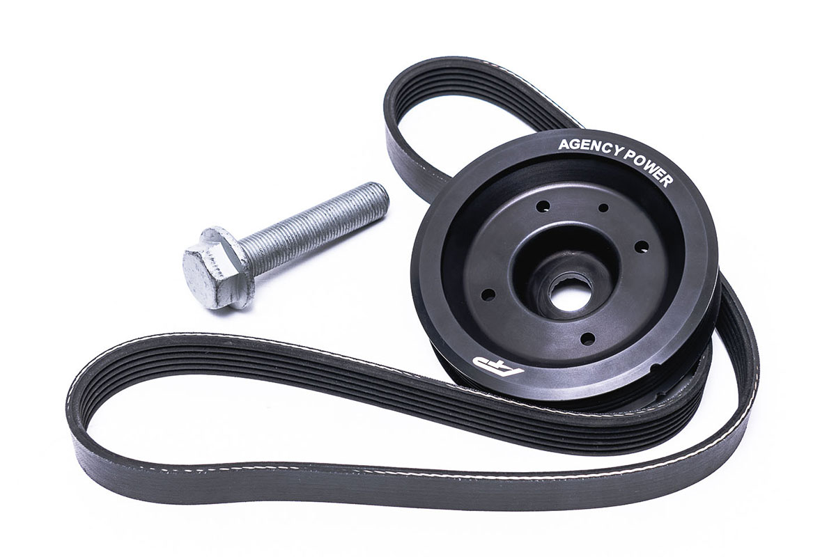 Agency Power’s new under-drive pulleys for 2015+ 2.0L TDI and 2015+ 1.8L/2.0L TSI engines reduces the amount of power need to drive the accessories. The result is more power to the wheels thanks to the reduction in power used for the accessories. On top of the power gains, the reduction in rotational mass helps the engine rev quicker and more freely. Included with the pulley are a crank bolt and a new serpentine belt.