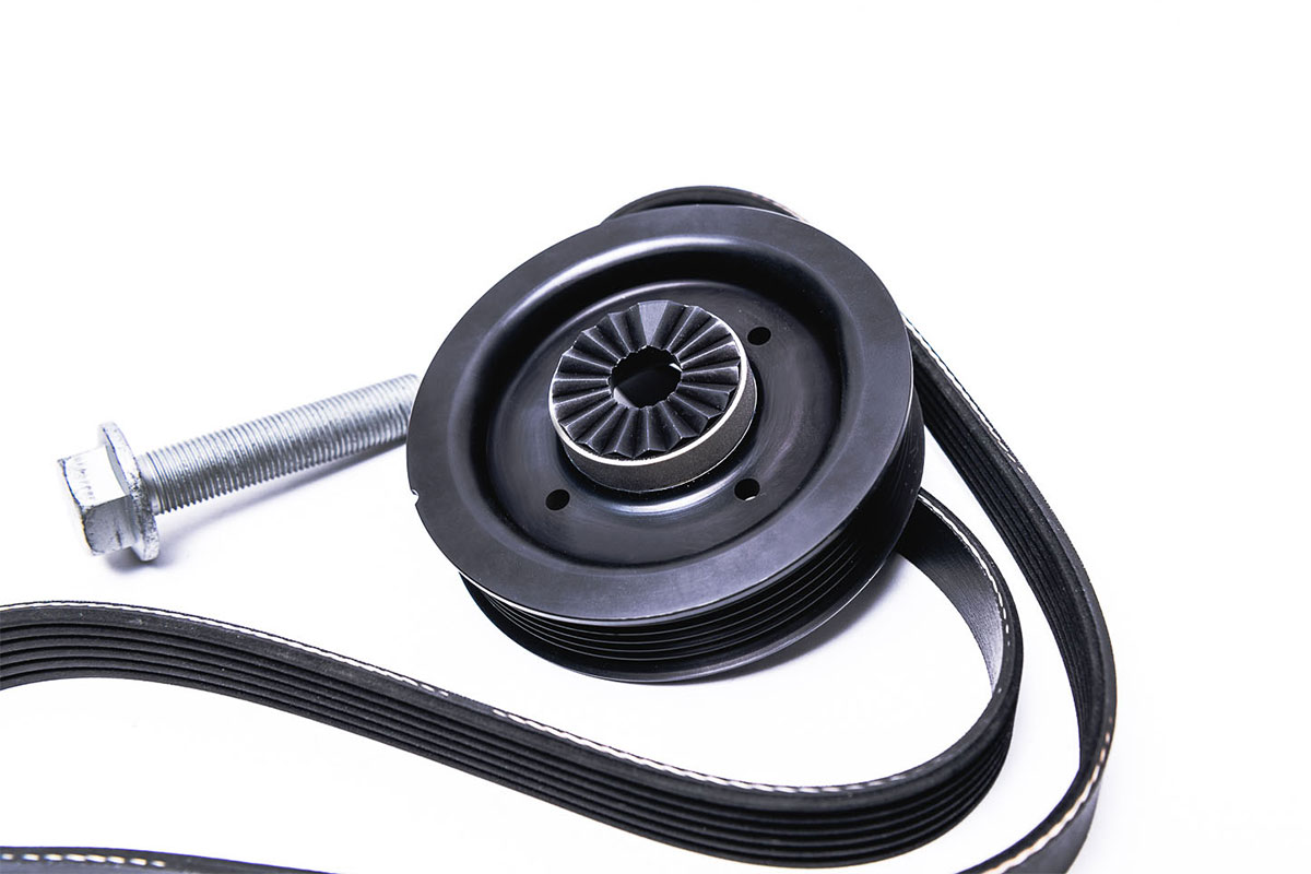 As you probably know, not all the power the engine produced is used to drive to wheels. On the front of the engine, you will find a handful of accessories which are driven by a serpentine belt. These accessories include the alternator, power steering pump (where applicable), water pump, smog pump (where applicable), and other accessories. All these accessories ultimately decrease the amount of power being sent to the wheels. If you want to decrease the amount of power the accessories use, you can either increase the size of the accessory pulleys or decrease the size of the crank pulley, which is where under-drive pulleys come into play.