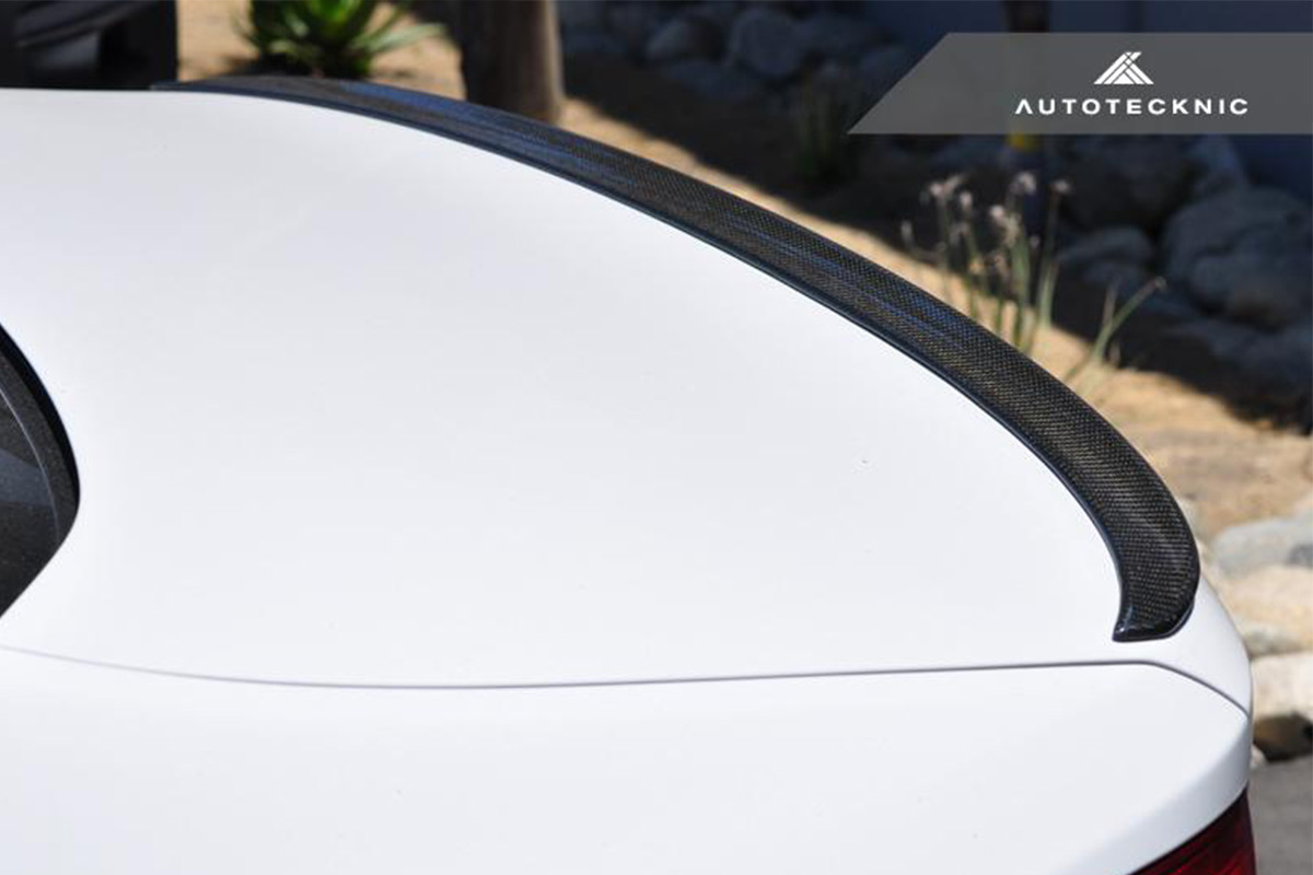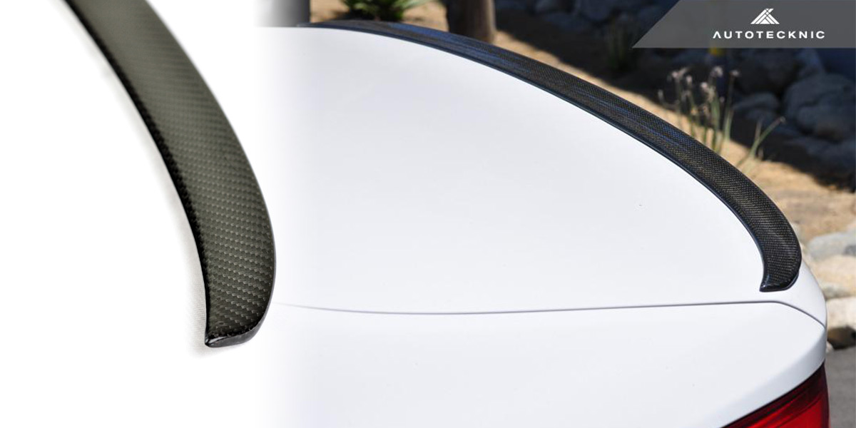 With the newest generation of large body BMW cars becoming increasingly popular, it was only a matter of time before tons of cool aftermarket parts started popping up. AutoTecknic, a globally recognized aftermarket parts manufacturer, has been developing new carbon fiber parts for these new BMWs, most of which are exterior cosmetic parts. One of those new parts is AutoTecknic’s trunk spoiler. Like many other AutoTecknic parts, this spoiler made from carbon fiber which not only looks awesome but it is also strong and light.