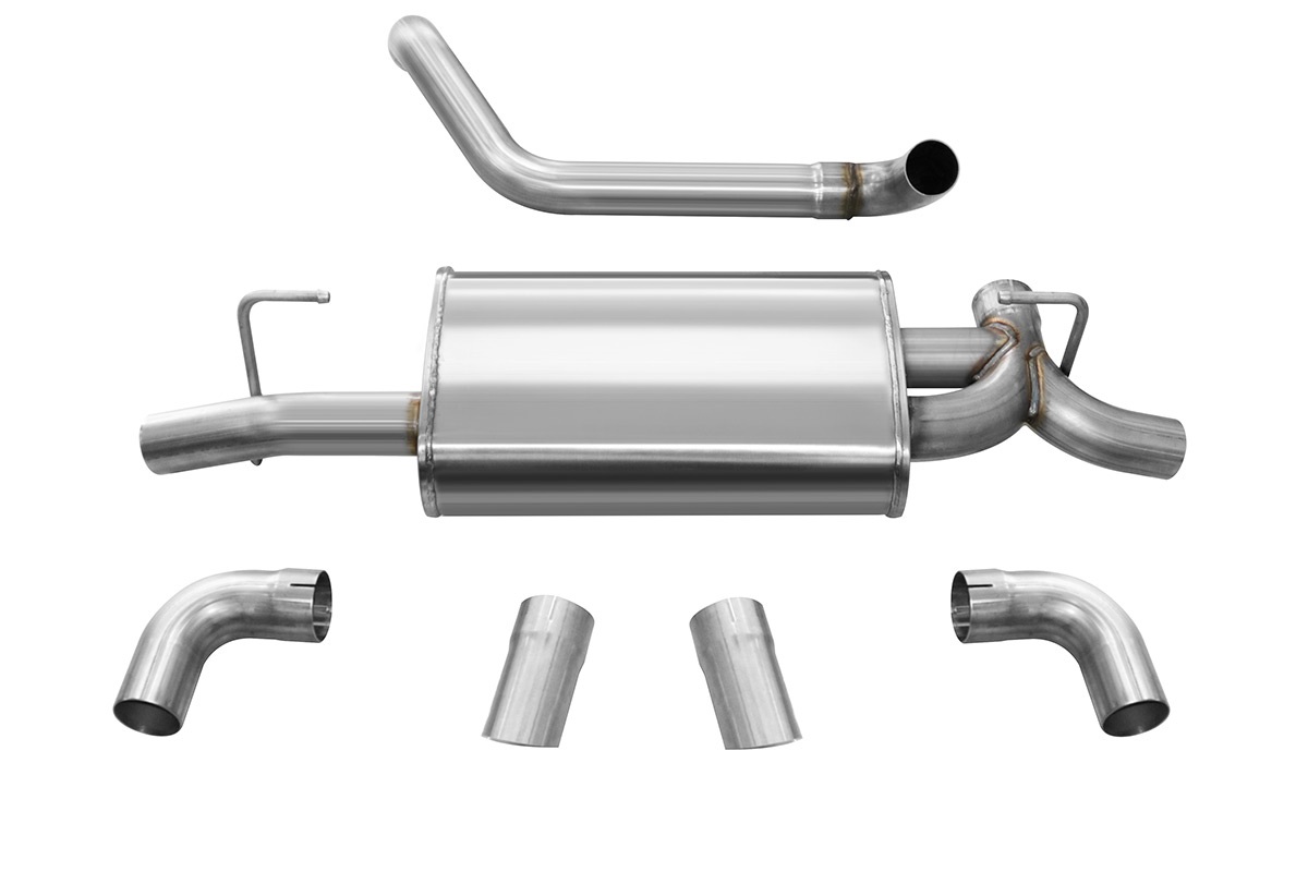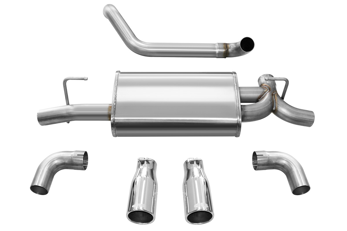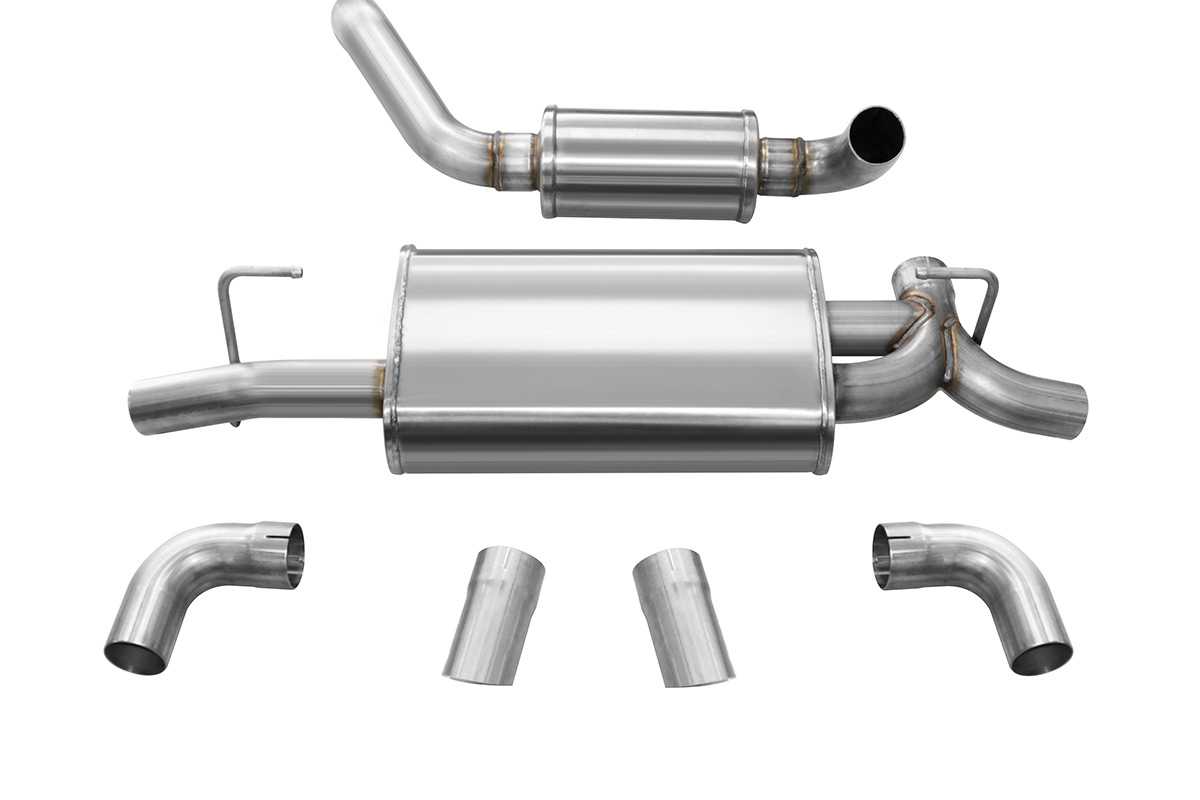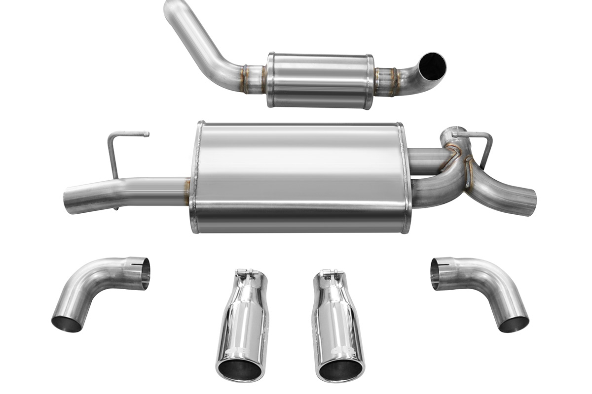 An aftermarket exhaust system adds power by allowing exhaust gases to escape the cylinder more easily, resisting the upwards force of the piston less. If you’ve shopped for an aftermarket exhaust before, then you’ve probably heard of Corsa Performance. They’ve been working on new axle-back exhaust systems, and those new exhausts are now available through Vivid Racing! There are two different tip options, two different muffler setups, and two different colors. All the systems will use 2.5” diameter piping which will help improve flow, ultimately improving performance. Unfortunately, these are only axle-back systems, so you won’t the same kind of gains you would with a full catback exhaust.