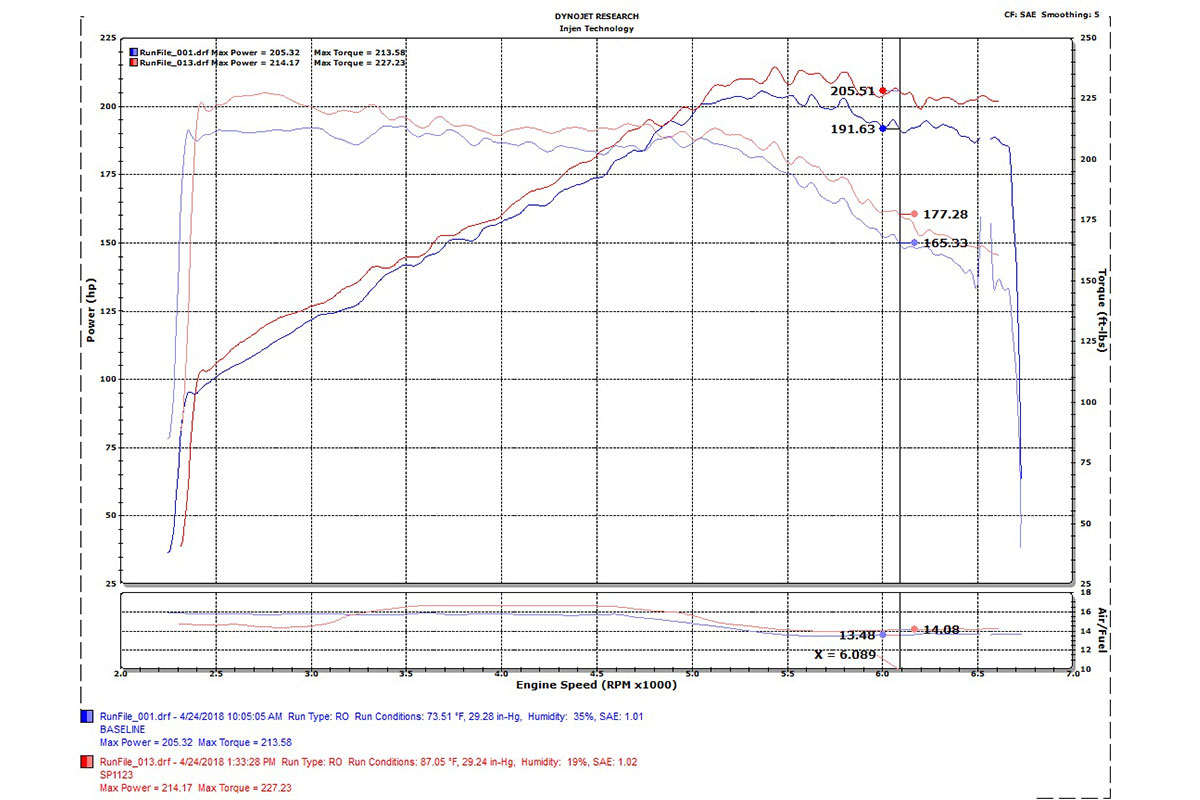 None of this means anything if the intake doesn’t consistently add power. As shown by Injen’s dyno graphs below, this intake has been dyno proven to pick up 10+ horsepower at the peak, with solid gains throughout the power band. At the bottom of the rev-range, there is a big increase in torque which will make your 330i way faster off the line and make it much more fun to drive around town since the RPMs will stay pretty low inside town.