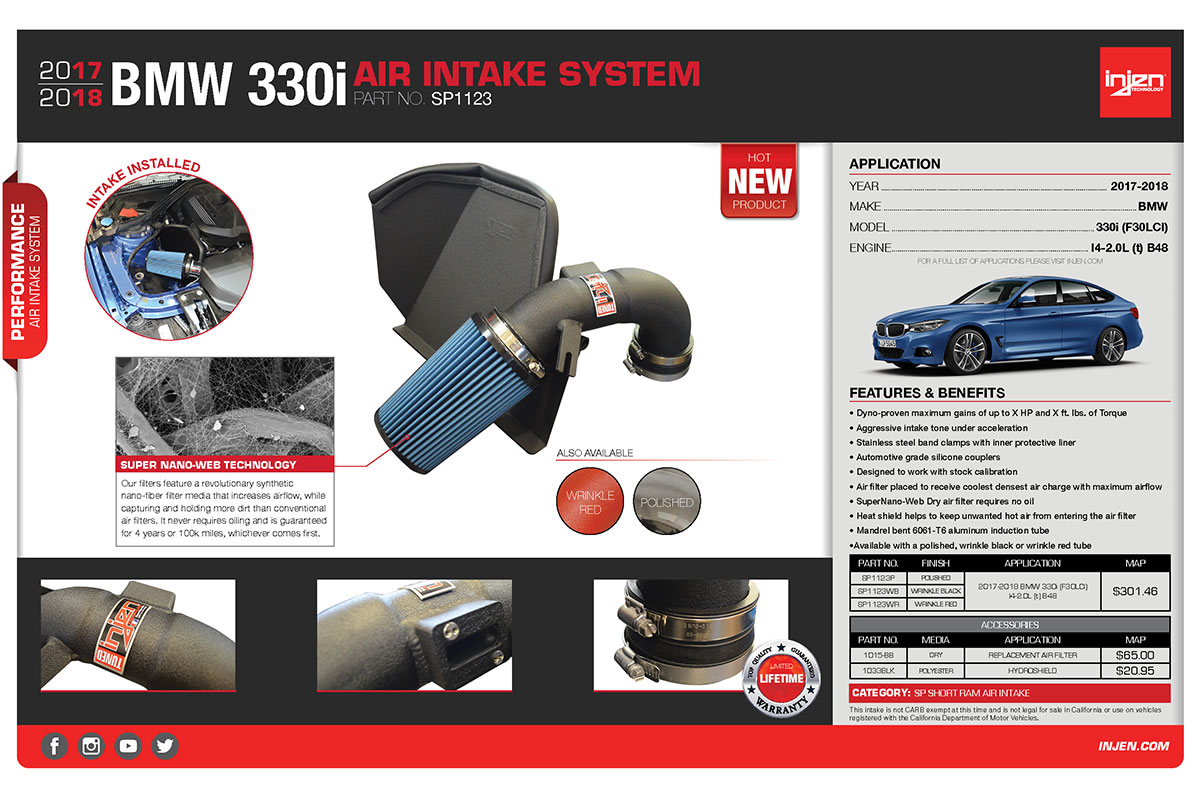 If you have any questions about the Injen Intake for BMW 330i, please do not hesitate to contact us. We can be reached by phone at 1.480.966.3040 or via email at [email protected].