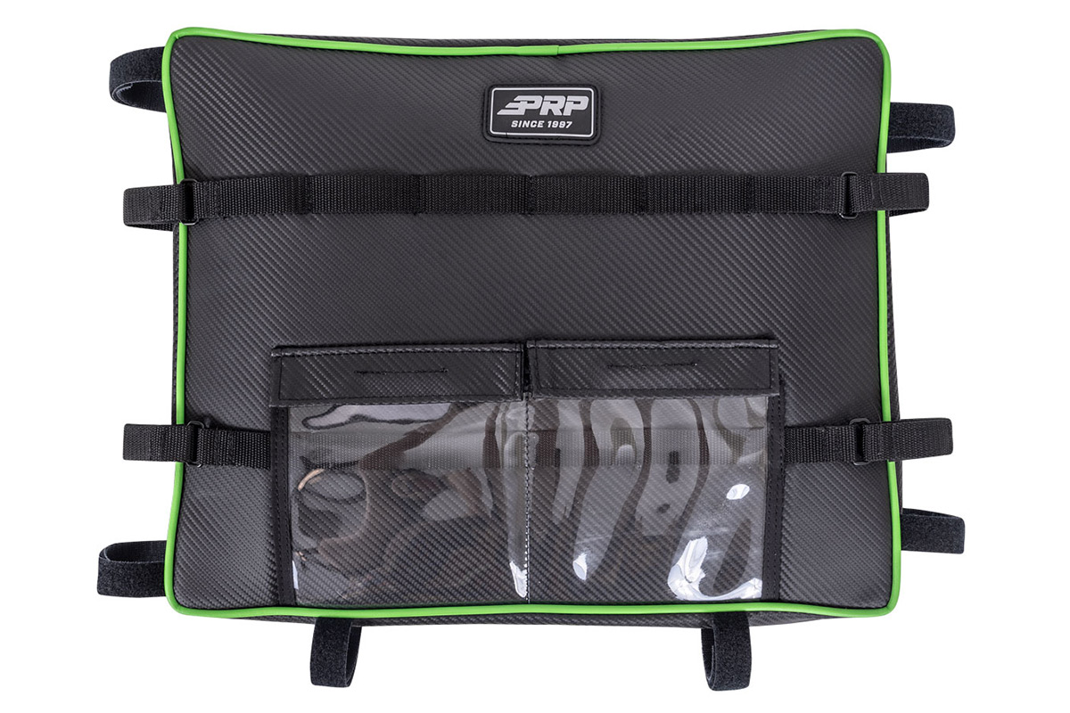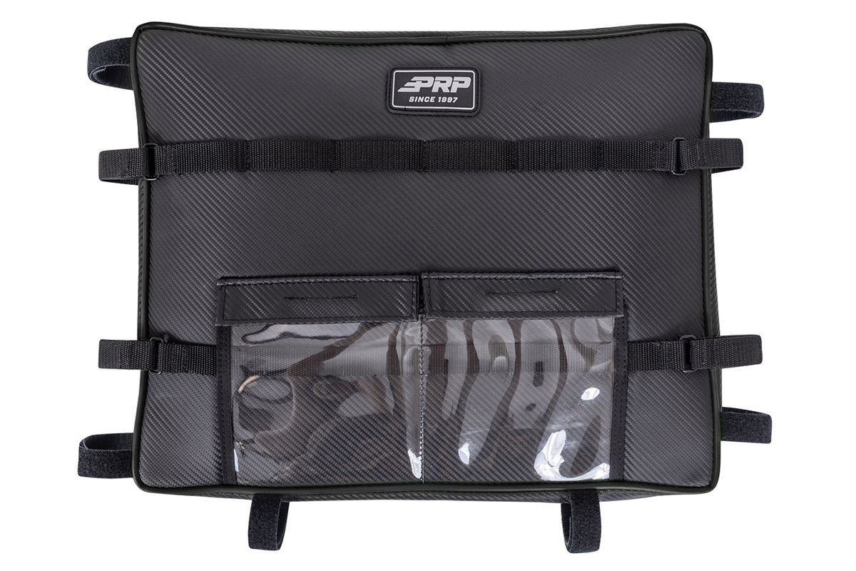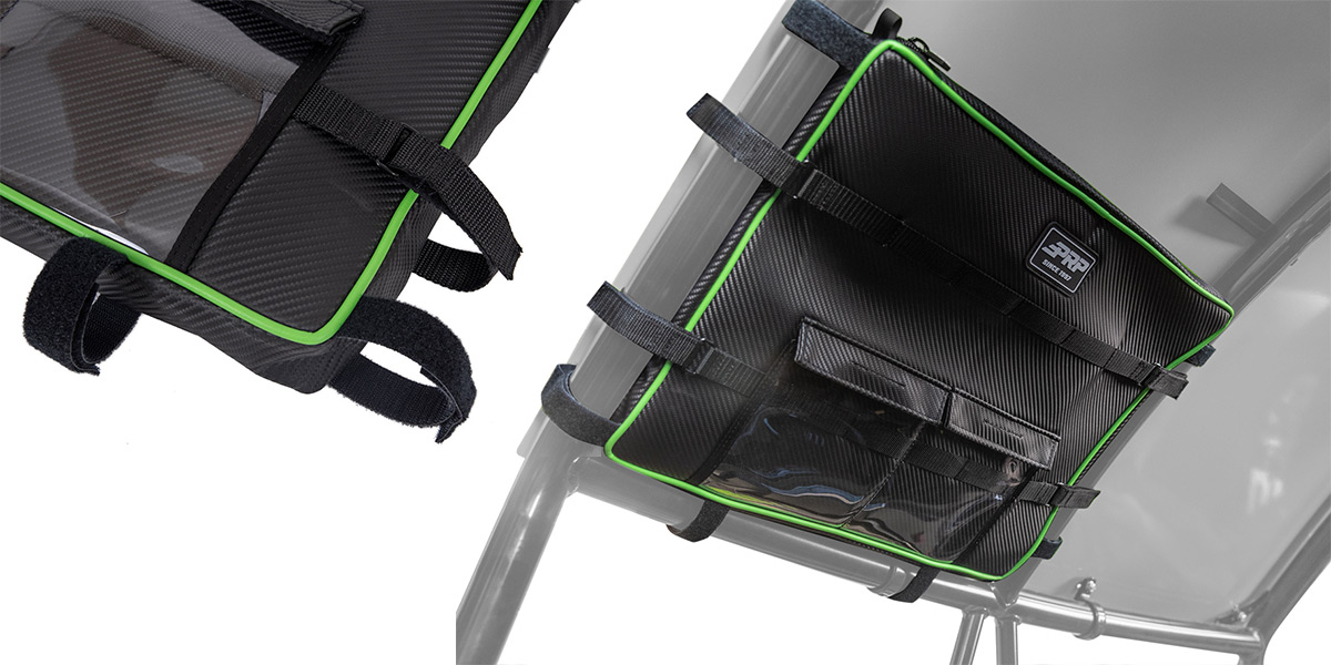 See, the Wildcat XX isn’t all that large, and storage space is very limited. If you want to store goggles, jackets, gloves, tools, or other items, it’s pretty much impossible because there isn’t anywhere to put it all. PRP does offer door bags, but those take up a little bit of the limited leg space. If you want easily accessible storage which doesn’t sacrifice leg space, PRP’s new overhead bags are the answer. The bags mount to the roof by using velcro straps on the cage, which means it will work with most aftermarket roofs. The bags are sold as single units, so you can mount it above the driver or passenger seat, or both if you purchase two bags.