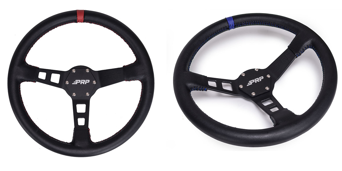Like any PRP product, these new steering wheels are specifically designed for hard off-road use. Each is made from high strength aluminum, with a matte black finish, and comes with a PRP emblem plate. Available in a Flat or Deep Dish, with either Suede or Leather grip, and four different colors to choose from. Each steering wheel 6-point bolt pattern, that is most common with off-road quick release adapters. Perfect for UTV’s, Jeeps, Truck, Buggy, or other off-road vehicles.