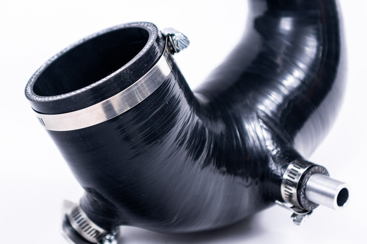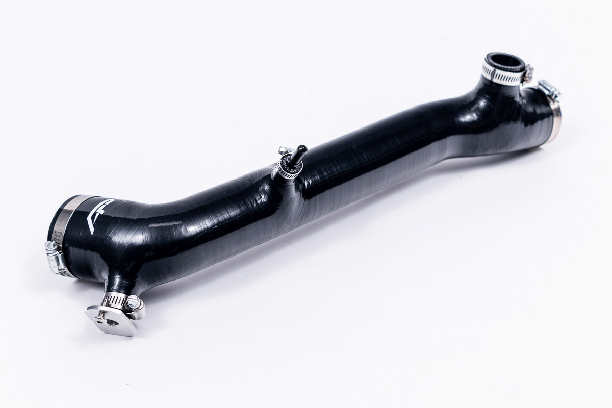 With an aftermarket intake, you can easily improve the amount of air that is fed to the turbocharger, but if you opt to use the factory intake pipe, you will be leaving performance on the table. Agency Power aimed to fix this issue with their new silicon intake tube. This tube is a direct replacement for the OEM plastic tube which is not only weak and prone to cracking over time, but also uses an inefficient design and causes a lot of turbulence, and turbulence kills power. Unlike some other silicon tube on the market, this tube is constructed with a 3-ply design, making it very strong and resistant to collapse. It includes a MAP sensor port, crankcase breather port, and blow off valve port to work with factory components.