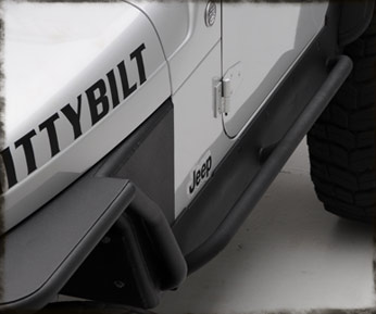 The XRC Armor rock sliders are manufactured from a 3/16-inch solid plate and are handmade to meet the vehicle’s exact specifications. So, you can be sure that every part will fit like a glove. Smittybilt’s new line of products are finished in a black powder coat, which is a perfect primer if paint is needed or desired.