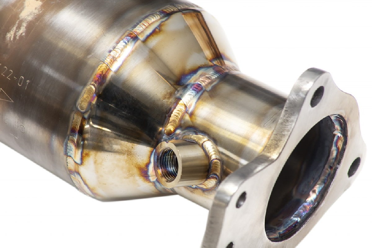 The HD design uses a stout triple foil winding for maximum strength. The brazing stripe is an additional feature that prevents the core from moving or experiencing any damage from sustained high horsepower abuse. SPP utilizes a large and appropriately sized catalyst to allow for the maximum gains. In fact, they are the same cats tested and proven on the company’s McLaren and Porsche Turbo applications for big horsepower support.