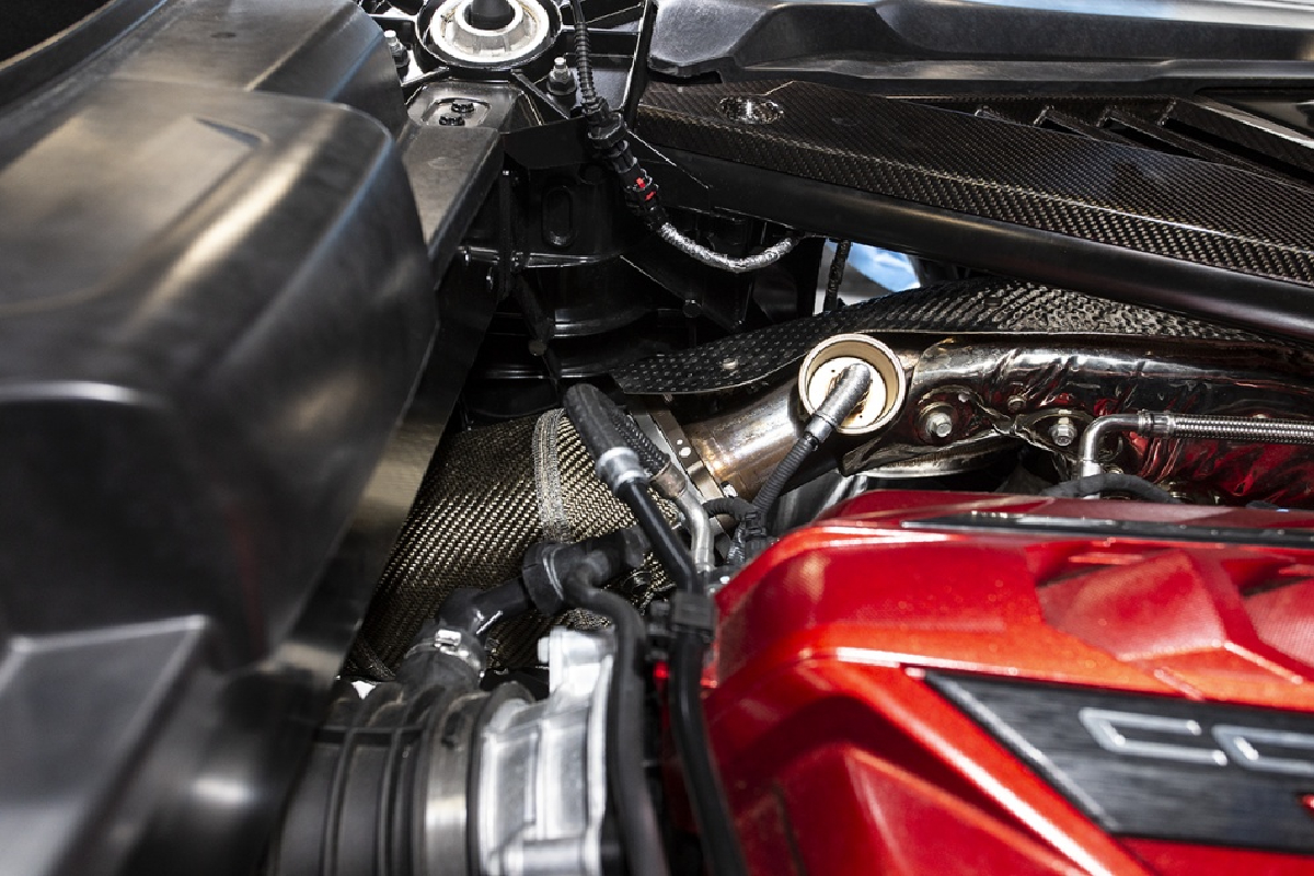 Each set of Soul Performance’s C8 Corvette Sport Catalytic Converters is assembled in-house right here in the USA from mandrel-bent, thick wall .065″ T304L stainless steel. The back purged TIG welding ensures proper weld penetration and longevity for optimal performance. As a result of the catalytic converters’ close proximity to sensitive components, heat protection is a must with the Corvette C8. That’s why Soul Performance Products teamed up with PTP Turbo Blankets to develop a bespoke, form-fitting heat shielding solution able to withstand 2300°F!