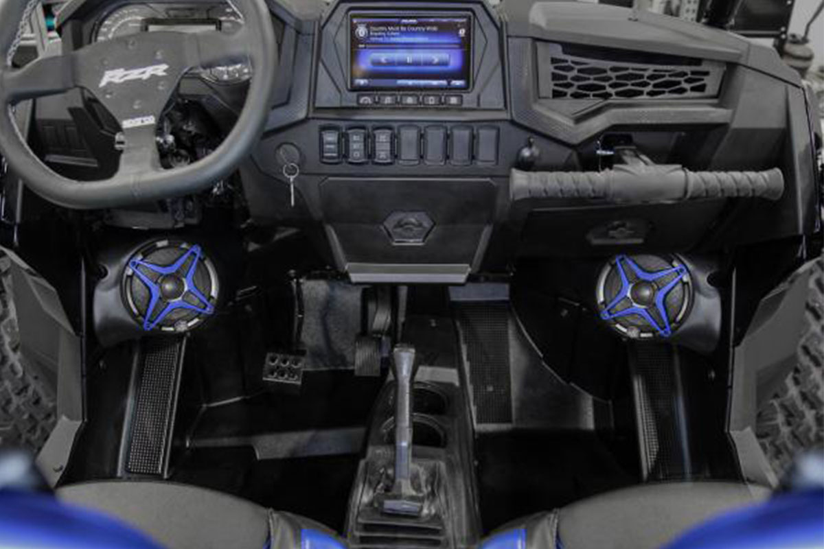 SSV Works designed this new Turbo S audio system to be a simple plug and play solution with everything included. There is no soldering, cutting, or custom work required! You bolt in the pre-installed speakers and included amplifier with the plug & play harness! The system is designed to work with the OEM Polaris Ride Command system, and you can control all your music from the factory touch display. For those who want even more sound, SSV Works offers cage mounted speaker pods.