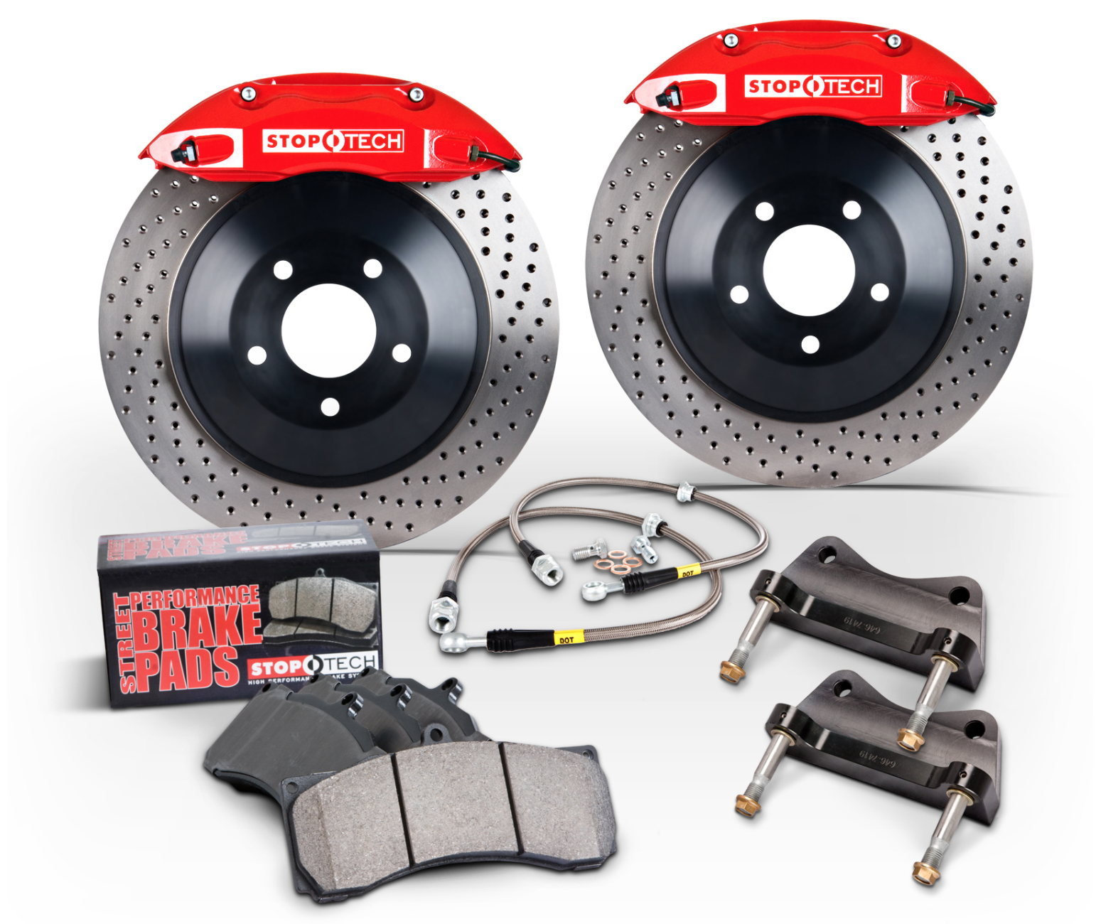 Championship-winning StopTech big brake kits have been developed through years of racing success. These patented brake system upgrades include stiffer calipers, larger rotors, higher friction pads, stainless steel braided lines, and all of the necessary mounting hardware and brackets to complete the job. These systems feature stiffer components and patented heat management technology. Each StopTech High Performance Brake Kit provides shorter stopping distances, better brake modulation, firmer pedal feel and less brake fade for stronger, more reliable performance both on and off the track.