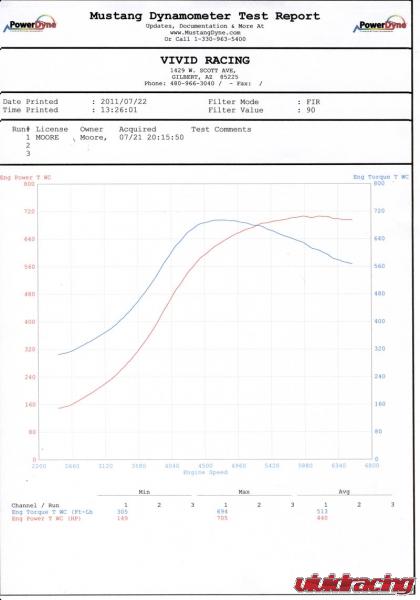 Got everything together and finished it up! And we have powa! 705awhp at 1.4bar 93oct on a Mustang Dyno BTW I did take it out with a VBox and the best 0-60 I could do was 4.02sec and the best 0-100 I did was 7.6sec. Because of the larger GT30 turbos, you do forfit some lowend for a insane mid to top end gain. I did try a 60-130 but just as I was about to go, 2 friendly officers showed up in the area. Good thing I was not going yet. So I thought I would save that for the customer!