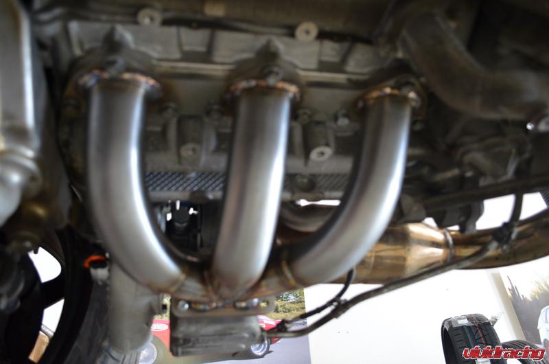 Basically the upgrade removes the factory VTG turbos and installs Garrett GT3076rs turbos. We use the 4inch compressor housing with anti surge inlet. The turbos have a .63a/r and are fitted with either Tial or Turbosmart wastegates. The Agency Power stainless steel headers feature a merged collector designed to give the turbos the ultimate flow it needs. The major works is in the engine bay starting from the plenum and throttle body upgrade and continuing a full 3inch diameter with the YPipe and intercooler outlets. We add 76lb injectors coupled with the VRTuned OBDII ECU Flash which gives the car its power based on boost controlled by the Greddy boost controller. Fender intakes over the intercoolers feed air to the turbo chargers.