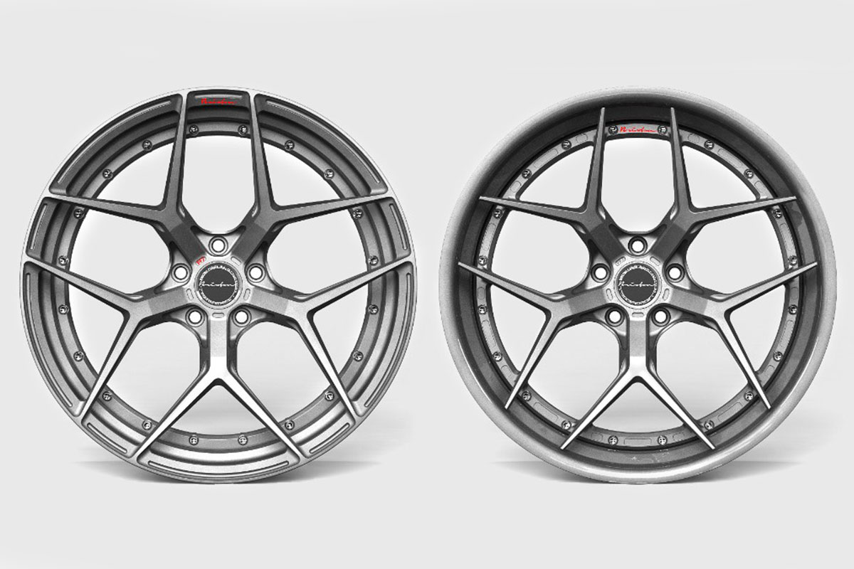 Like many modern performance-oriented wheels, the PF7 feature backed pocketing which helps save weight with compromising strength. The two and three-piece versions of the PF7 wheel use full titanium hardware for excellent strength and longevity, plus titanium hardware is significantly lighter than stainless steel hardware. The three-piece version of the PF7 has floating spoke ends, a design feature that has become extremely popular with high-end cars. The entire wheel is made from 6061-T6 aerospace grade aluminum which reduces weight further and provides great strength.