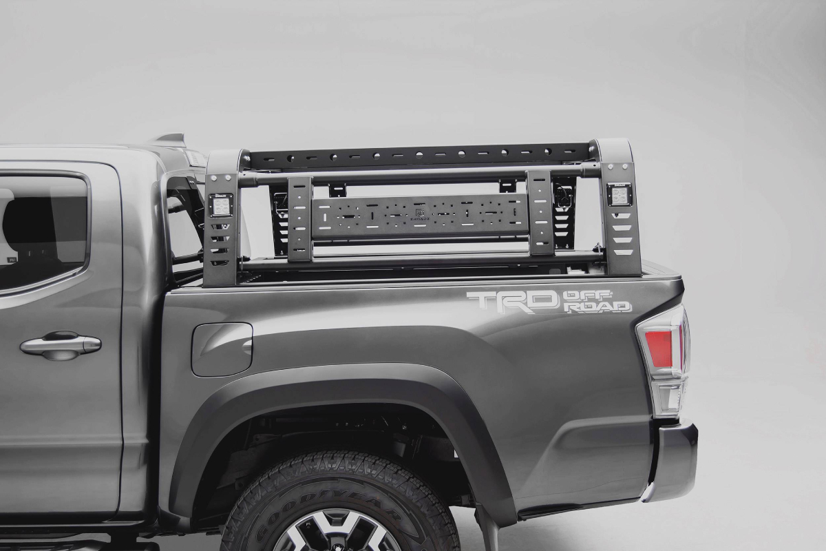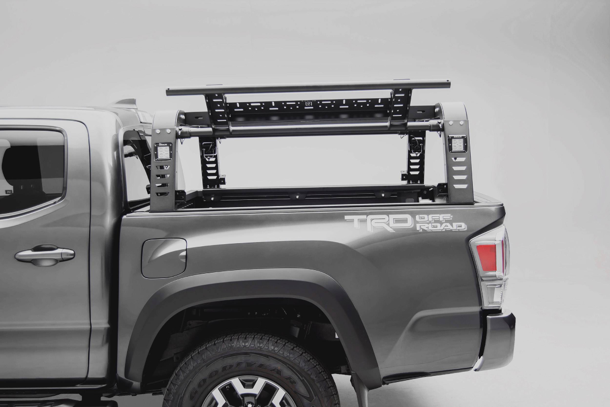 The ZROADZ Toyota Tacoma Overland Access Rack easily bolts into your Tacoma’s track system to get your 2016-2020 model prepared to haul any gear necessary for an extended off-road trip. This is the first truck bed accessory of its kind featuring a mounting system engineered with bed access doors designed for lighter, larger accessories. The strategic design allows you to more efficiently store these items in a way that does not take up valuable bed space. What’s more, they can be easily moved out of the way to gain access to your Tacoma’s truck bed with minimal effort.