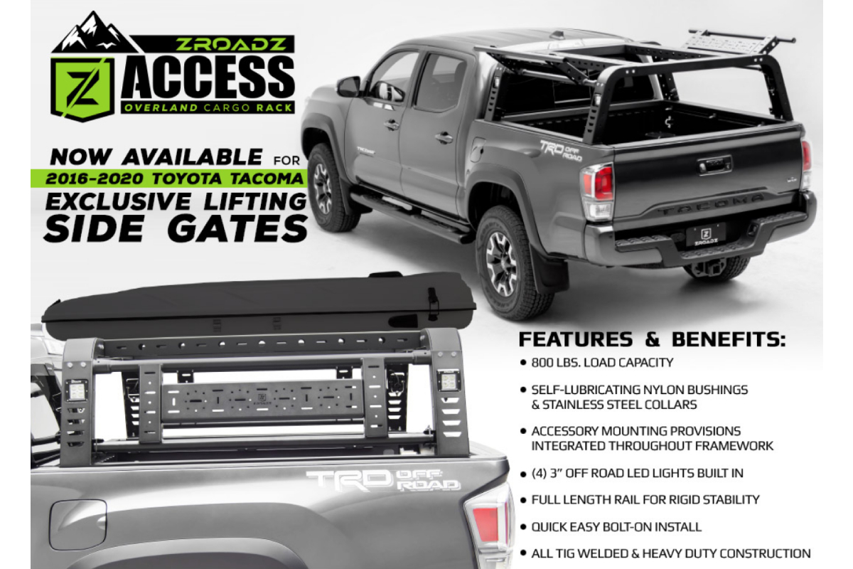 When it comes to overlanding, the Toyota Tacoma is one of the most popular and ideal vehicle platforms available. The Tacoma is highly capable when it comes to off-roading and continues to prove itself in the great outdoors. Whether you are just going on a brief off-road adventure or escaping the paved jungle for multiple days, you are likely going to need much more equipment and gear than you would for any ordinary cruise. That’s where ZROADS all-new Access Rack for the Toyota Tacoma comes in. This cargo rack will have your Tacoma overland ready in no time with room for all the essentials and even a roof-top tent for camping.