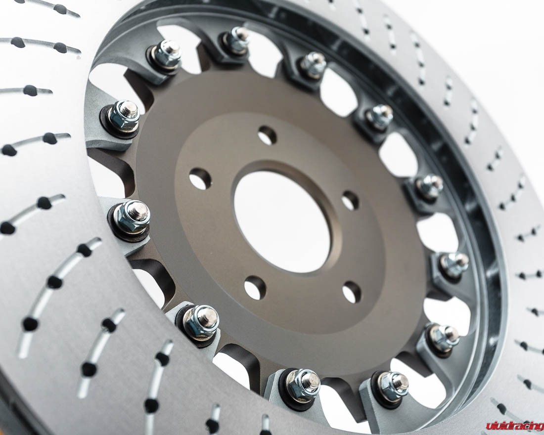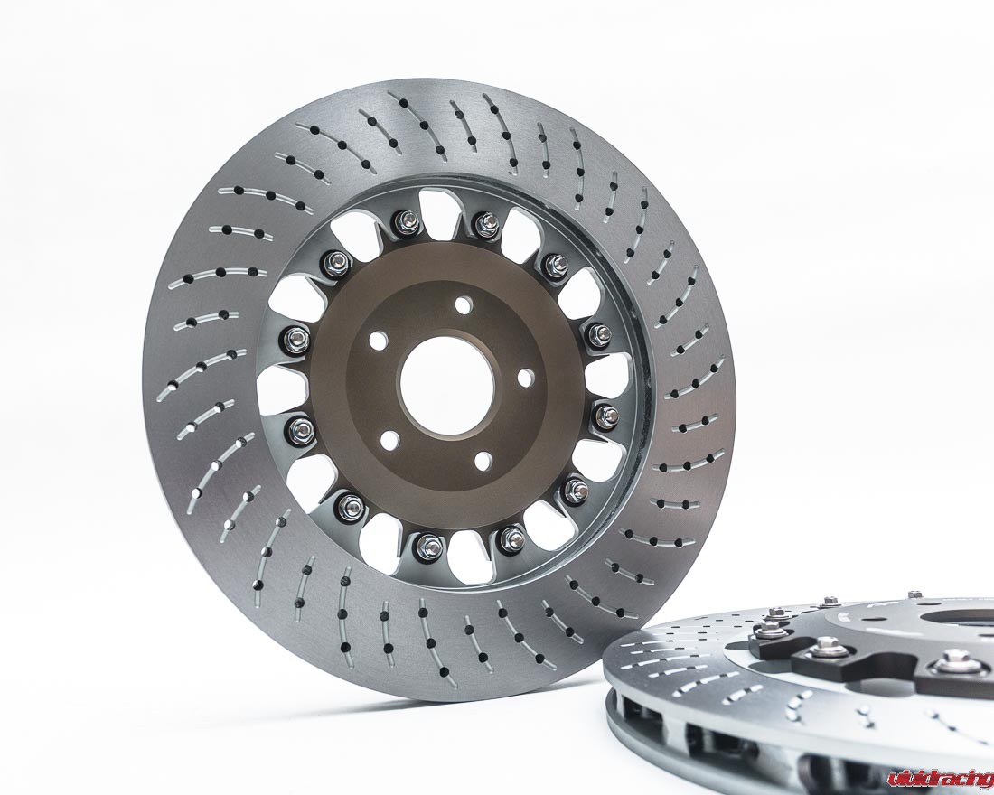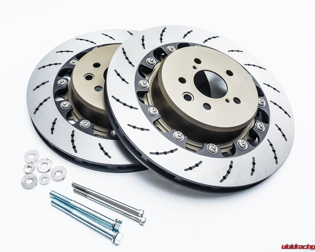 - Pair of 2-Piece 400x34mm front or 385×30 rear Rotors assembled with hardware and aluminum hats