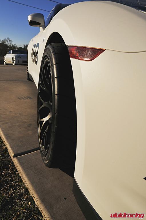 The Nissan GTR was designed to be the ultimate street car and certainly proved it by setting a Nurburgring lap record back in 2008. For the past 4 years the GT-R has been one of the most popular tuner vehicles. Equipped with state of the art on-board telemetry, giant Brembo brakes, and a 3.8L twin turbo engine, the GT-R is basically “Ready to Race”. However with tracking the car comes alot of abuse and need for an extra set of track wheels and tires. This is why our local Phoenix customer Wes decided to get these Velocity Motoring wheels for his track days. Even though the GTR comes stock with 20 inch wheels, Wes decided to go with a same size 19 inch set to get better availability of race rubber. The Velocity Motoring (VMR) wheels are the V710 7-Split Spoke design featuring a deep concave face. The wheels are 19×11, 5×114.3, +25mm finished in a matte black. When it comes to race rubber, now the doors are open for Toyo R888, Nitto NT-05, Michelin Pilot Sport Cup, and more. Check out more Nissan GTR Power Parts and GTR Wheels here.