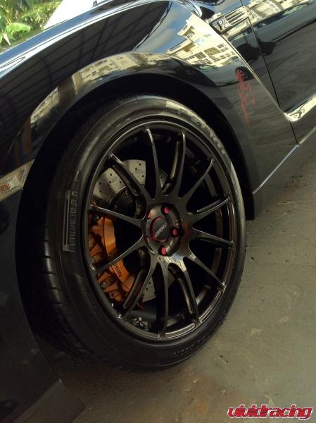 So how can you make the already iconic and most amazing Nissan GTR better? Wheels, wheels, wheels. This customer geared up his GTR with a set of the limited edition Volk Racing G12 wheels. Finished in double machined black, the fronts are a 20×10 +30mm and the rears are a 20×12 +23mm. The wheels were then wrapped with Pirelli tires in a 285/35/20 and a 305/30/20. With an aggressive aero kit, carbon fiber hood, AMS turbo parts, and 1000cc injectors, we are sure this Nissan GTR is up to no good! Check out more Nissan GTR Turbo Parts Here.