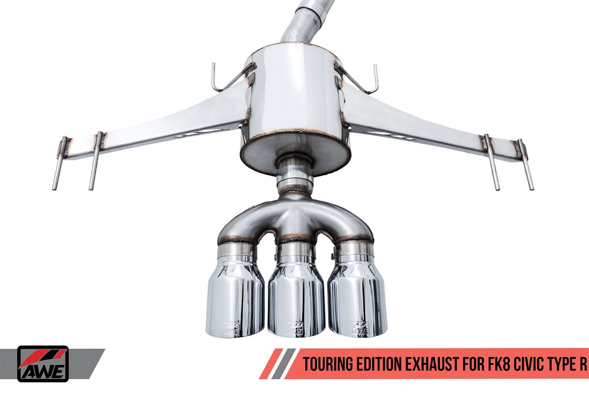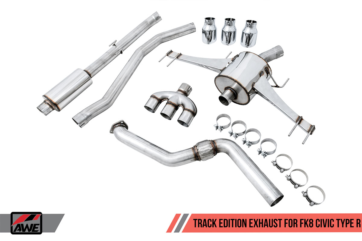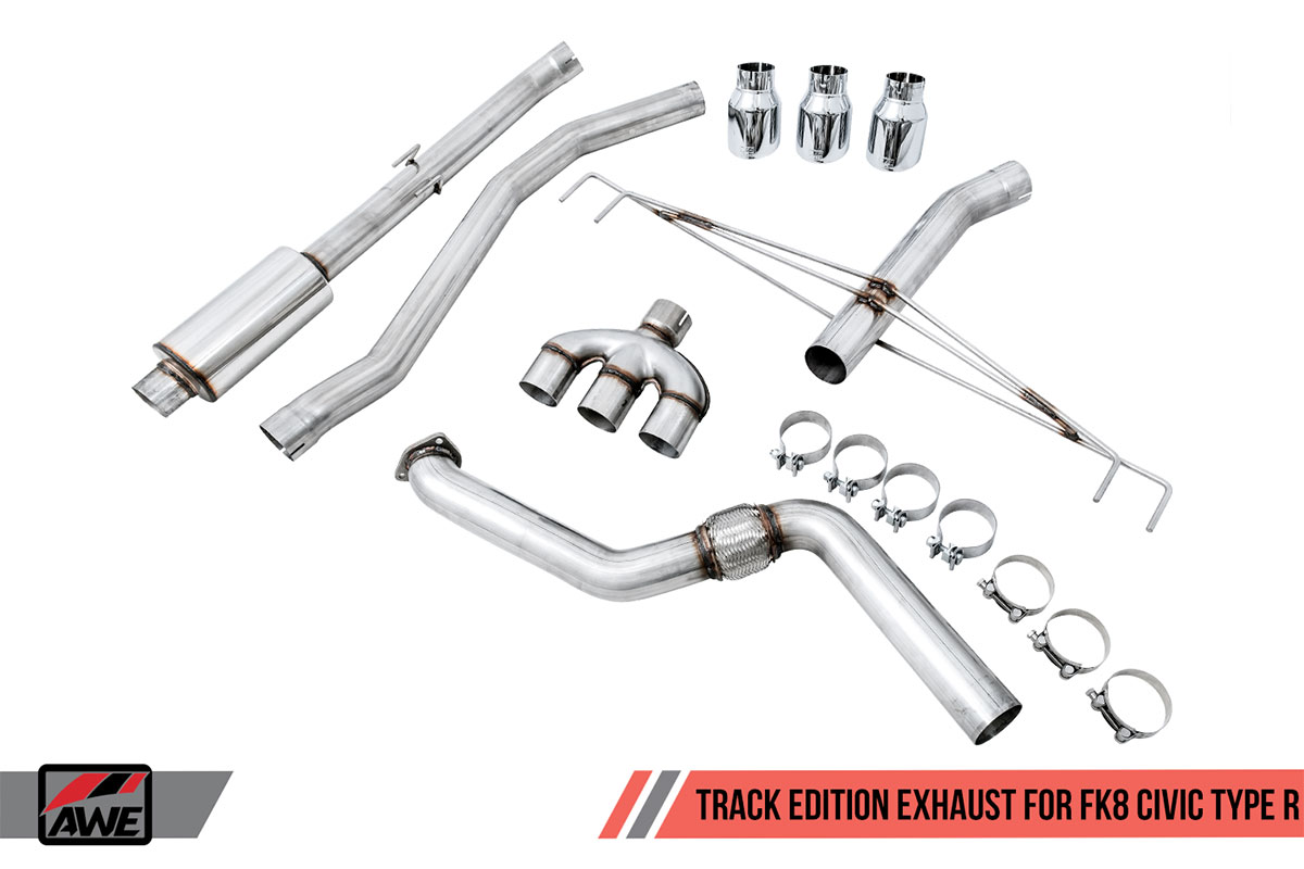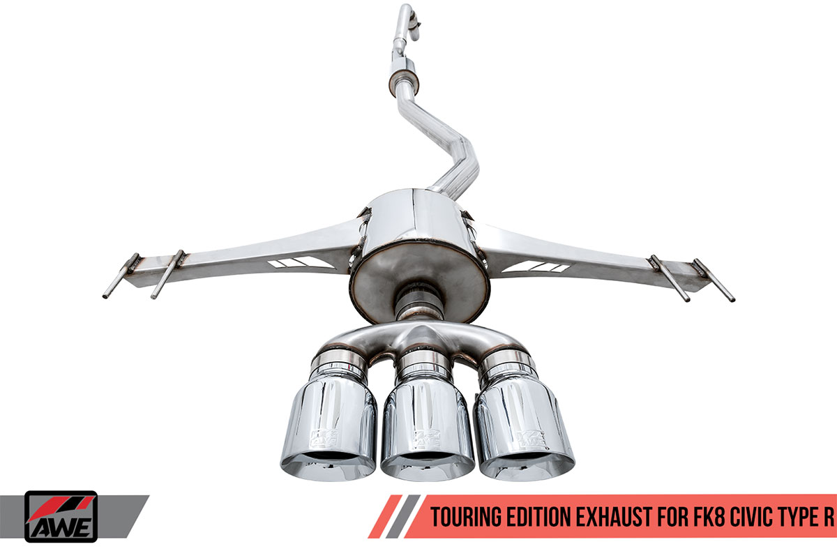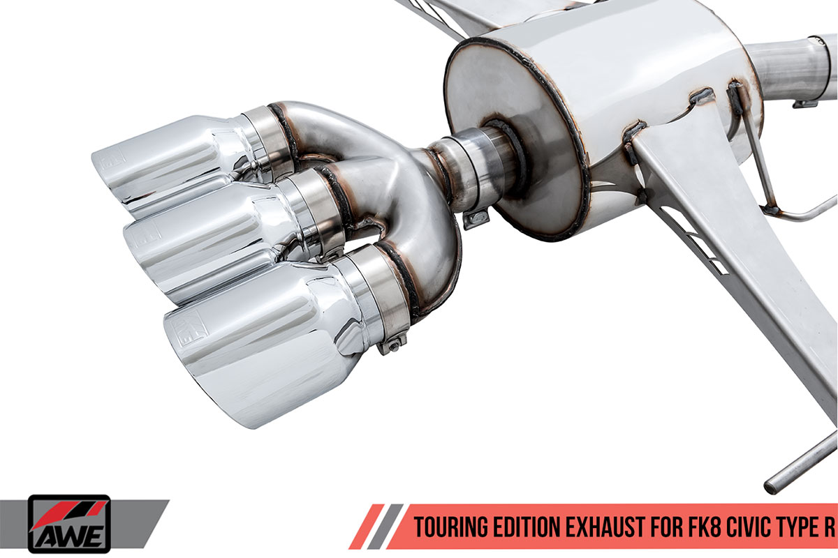 This new exhaust suite includes two different systems for the FK8 Type R and two different systems for the SI. As with other AWE exhaust systems, the Track Edition is for those who want the loudest exhaust possible. The Touring Edition is much more tame than the Track Edition, but still quite a bit louder than the stock exhaust.