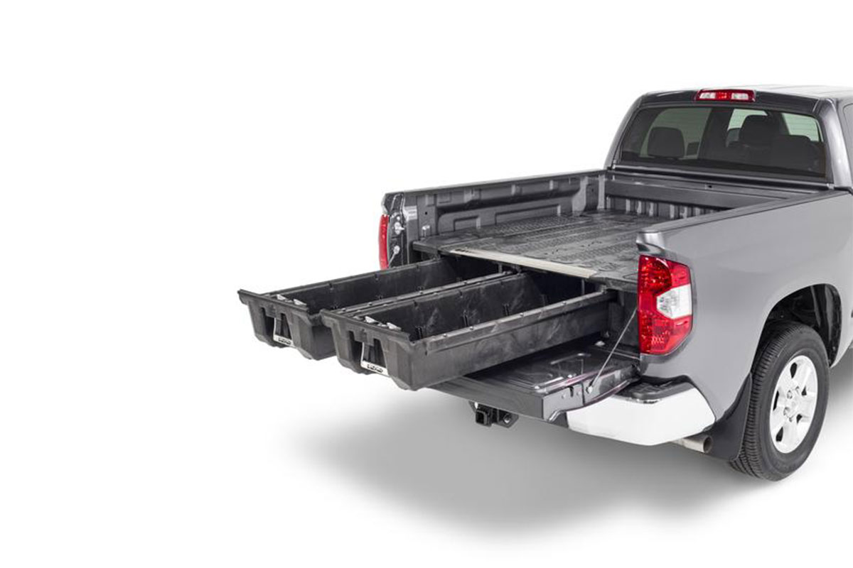 The bed of a pickup truck is great for throwing things into and going on your way. Big, small, or heavy, it doesn’t matter. The problem is the lack of organization in the bed. If you need to quickly and easily access specific items in your bed, it can quickly become a difficult task. You could make your own storage solution, but you would likely lose all your payload capacity. If you want a secure storage solution and maintain a decent payload capacity, then DECKED is perfect for you.