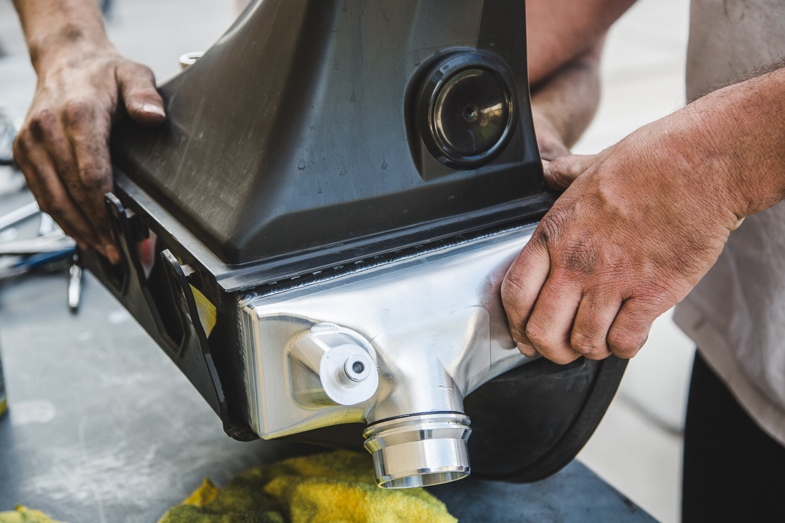 Reattach the trimmed plastic intercooler ducts to the intercoolers.
