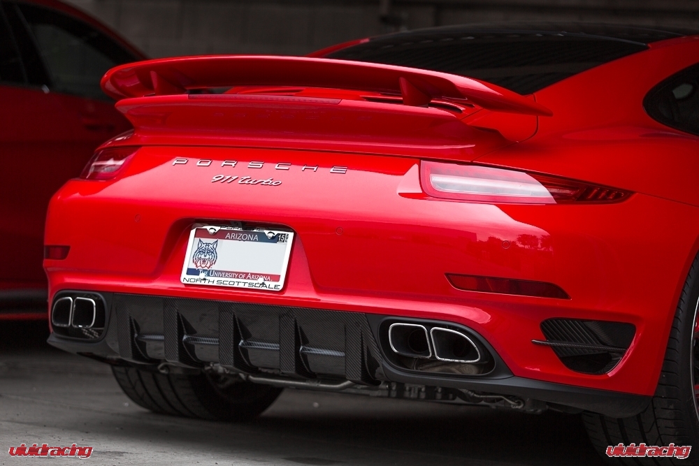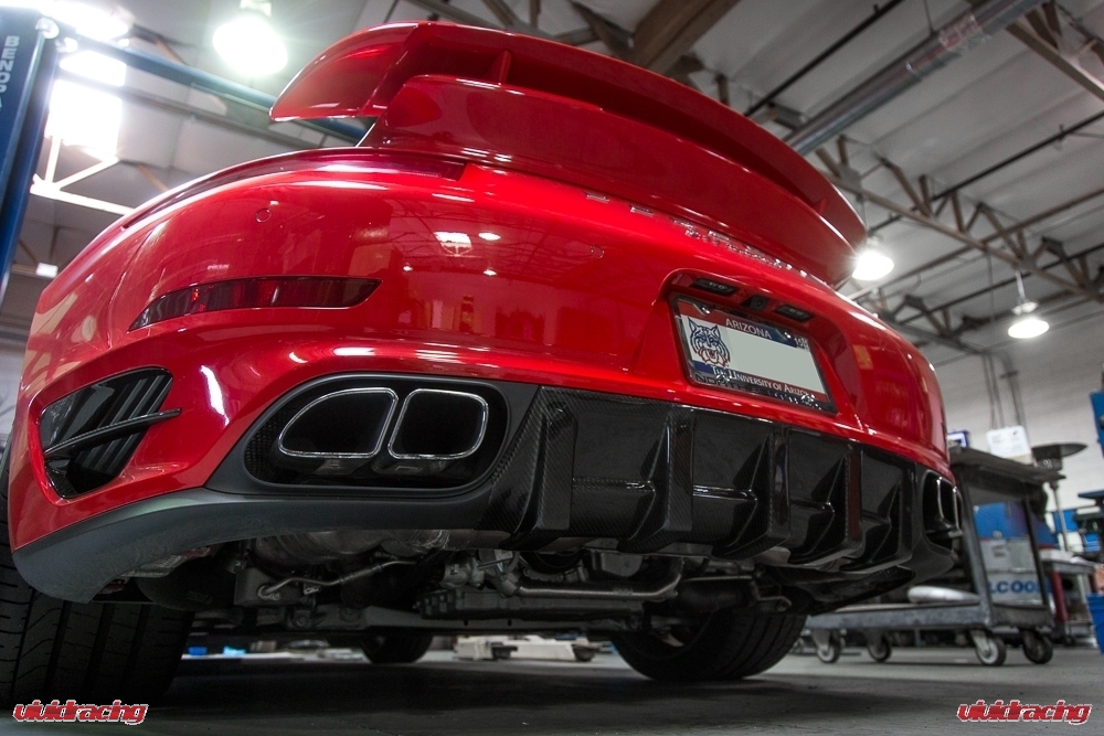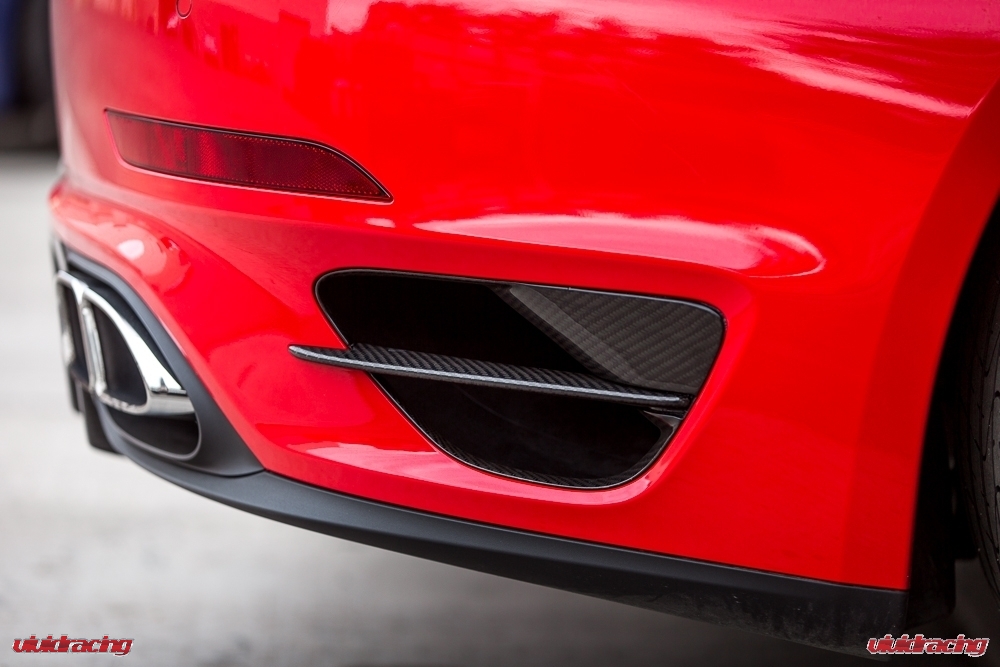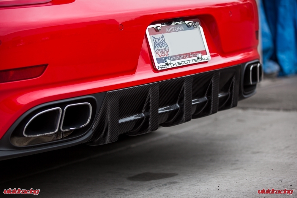 We have to admit that the 991 Turbo is our new thing that we are pretty damn good at! Tuning Box Kits, Exhausts, Intakes, YPipes, Suspension, and Carbon Aero Parts are just some of the parts in our Agency Power repertoire. As well we carry a slew of other parts from manufactures like Fabspeed, Techart, and endless wheel manufactures such as Niche, HRE, Vorsteiner, and others. This local customer of ours loved our new Agency Power carbon fiber diffuser as seen on our Project 991 Turbo that he had to have one. So he scored the 2nd one available before ready to ship inventory arrives. Fitting this to the rear end seems as if it belongs on there as just a simple add-on piece. We also helped him fit these Techart front grill inserts which I think I need a pair for myself! Also on this car from another manufacture is a set of carbon fiber front grills, side intercooler ducts, and rear bumper fins. He even added the traditional GT2 hood vent to the car which turned out great. Check out these pics we shot here at our shop! You can view all our Porsche 991 Turbo Parts here.