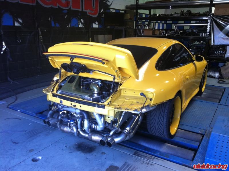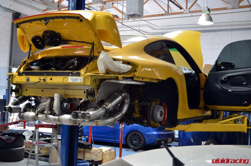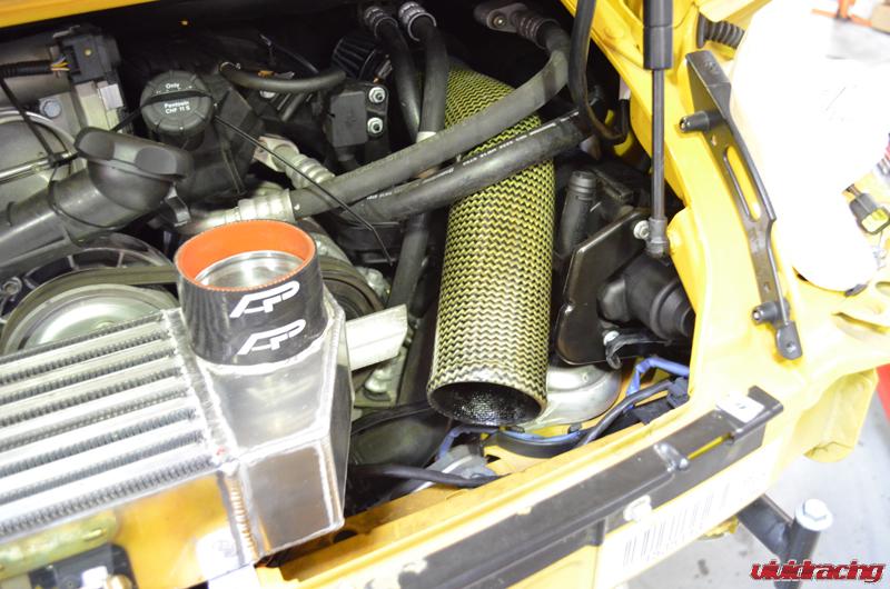 Yes this qualifies for a Project Not Ours story! This Porsche 996 C4S is getting the all new Vivid Racing Turbo Kit for the 996 Carrera. This super clean 2003 996 is speed yellow with stunning wheels in black with a yellow lip. Completely stock, this is a perfect platform to showcase what our new bolt-on turbo kit can do. Our turbo kit is a full complete unit which dominates the competitions forced air induction kits for the Porsche. Making 130 all wheel horsepower on a Mustang Dyno and 91 octane, our kit includes features that nobody else has. One unique feature is our air to air intercooler with custom carbon kevlar intake box. Our center mount turbo provides equal exhaust flow out of the headers and to the Turbosmart Wastegate which is controlled by a Turbosmart boost controller. The turbo on its own is quite impressive. A Precision Turbo 6062 billet setup spooling at 3000rpm. Stay tuned to our Blog for updates and keep in the loop on our Gallery Here.