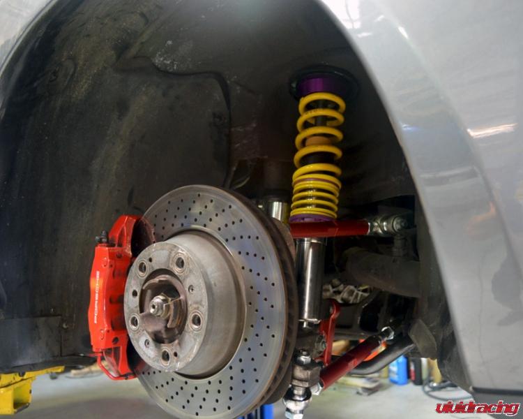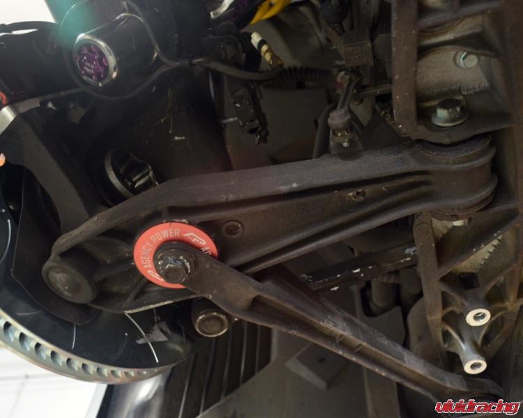 After being away from his Tiptronic 996 Turbo for 3 years, our customer was ready to get back in a P Car. The Porsche 996 Turbo is hands down one of the best performance turbo cars available right now for the money. But when stock handling, power, and looks is not enough, you break out the plastic and start your upgrade train! The major transformation of this car is with the Vivid Racing Stage 3 Suspension Package. This package was spec’d based on our experience with the 996TT and 997TT handling characteristics and needs. The first major component is with the KW V3 Coilovers. These coilovers provide an incredible street ride with their independent rebound and compression settings. With the patented bump stop design, the coilovers out perform your expectations on the track and in the fun run curves. Improving steering response and handling, sway bars are a must. We go with the 3 way adjustable front and rear H&R sway bars. With adjustability comes the need for strength so we add the front and rear Agency Power sway bar links. Since we have gone down in ride height to give this car a murderous look, we need the ability to adjust for more camber and toe then what the factory settings allow. Besides add adjustability, the Agency Power control arms and toe arms add rigidity to the cars handling from the 3-piece spherical rod ends over the stock bushings. Our final suspension add-on comes with the Agency Power control arm bushings. Fitting in both the front and the rear, these bushings take out the stock rubber mount to again give you an enhanced responsive handling characteristic. All of this is available seperately as a kit too (The Red Group).