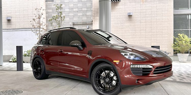 Devon Miller of Washington State is not only a major Porsche enthusiast and emerging Artist with music on Spotify, he is also a VR Forged fan. Already have a set of D03-R wheels on his Porsche 981 Boxster, Devon picked up this 2012 Cayenne S and wanted to get it equipped as well. So he opted for a set of 20×9.0 VR Forged D01 Wheels. The D01 is the perfect design for the Cayenne with its classy spoke machining. The gloss black finish of the 1pc forged monoblock wheels goes nicely with the Auburn Metallic paint of the Porsche. The wheels were done with a 40mm offset to sit just right with the fender edges and the black molding. As these are a custom built wheel, they can be made to any specifications you want as we do sizes 18-24. Interested in ordering a set? Go check out the Custom VR D01 Wheels Here.