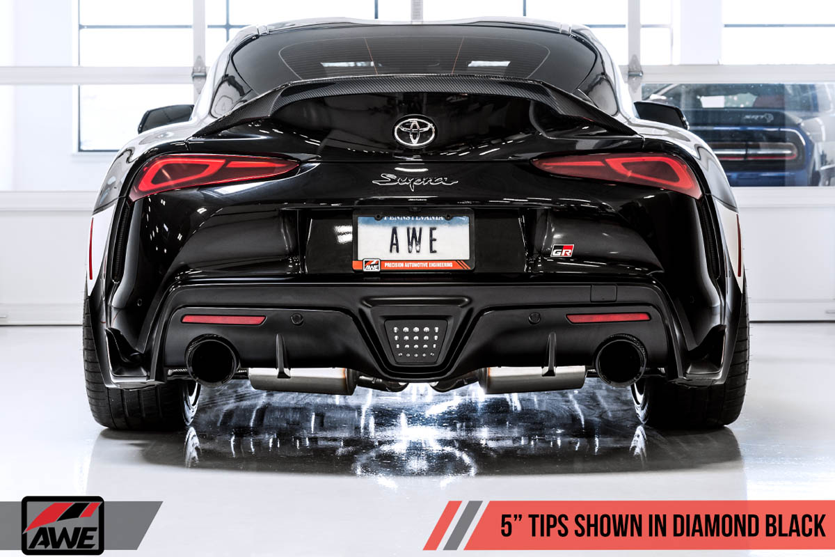 Fine-tuning this system, AWE hit the nail on the head with this exhaust. Offering six different variations of this exhaust, the possibilities are endless. You can find three main options for this system with 2 iterations of each one. The Track Edition is wide open with no restrictions whatsoever to hear your engine scream and maximize flow through the exhaust. The Non-Resonated Touring Edition has a nice mellow tone when cruising, but as soon as your foot hits the floor releases it’s inner beast. Lastly, the Resonated Touring edition is the perfect exhaust for someone that wants to unlock a little more sound out of their Supra without going overboard.
