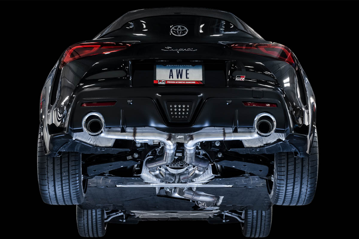 Being that the factory exhaust system seems to be quiet, many owners are resorting to replacing the exhaust first. Fortunately, they are not forced to straight pipe it due to no aftermarket support. AWE Tuning has recently dropped this new exhaust system for the A90 Supra that wakes up the B58 under the hood and gives it the aggressive tone you would expect coming from the Supra.