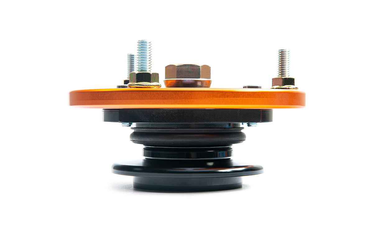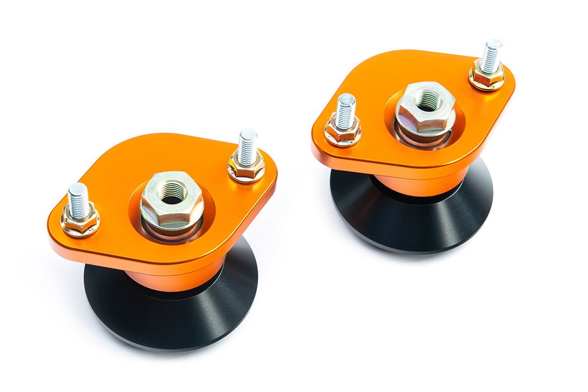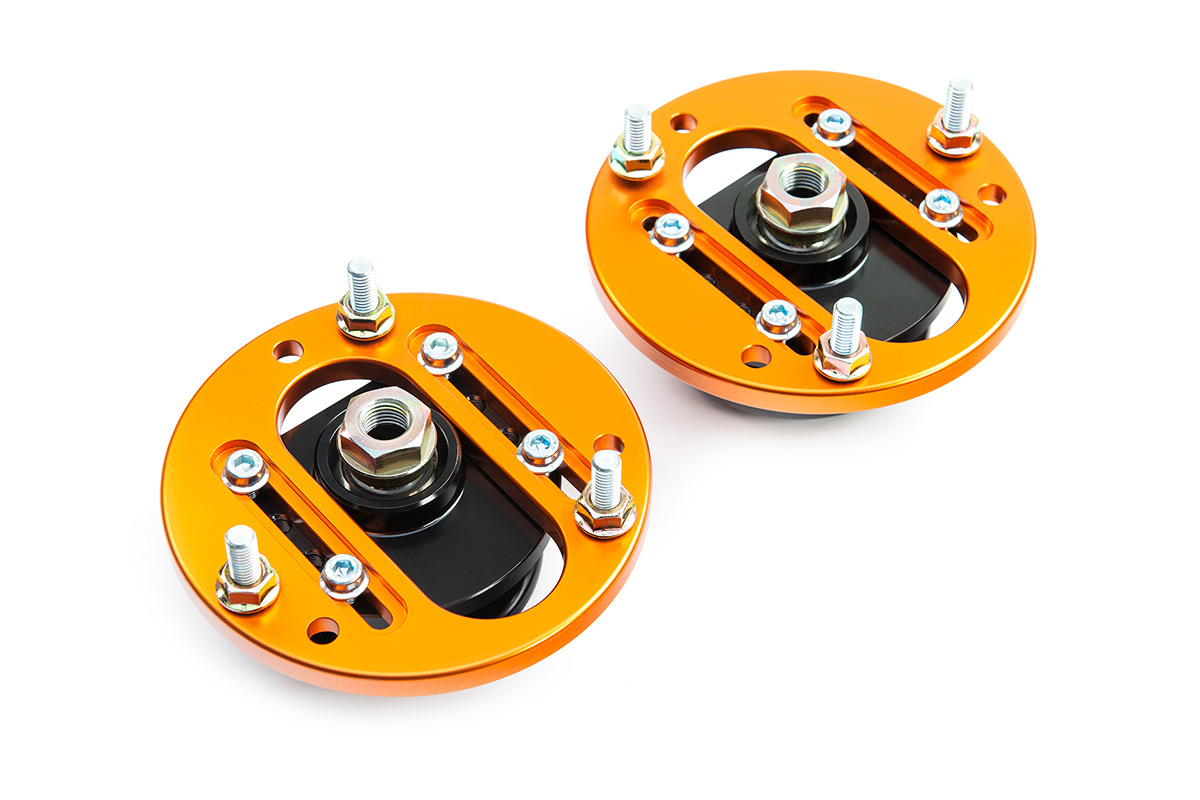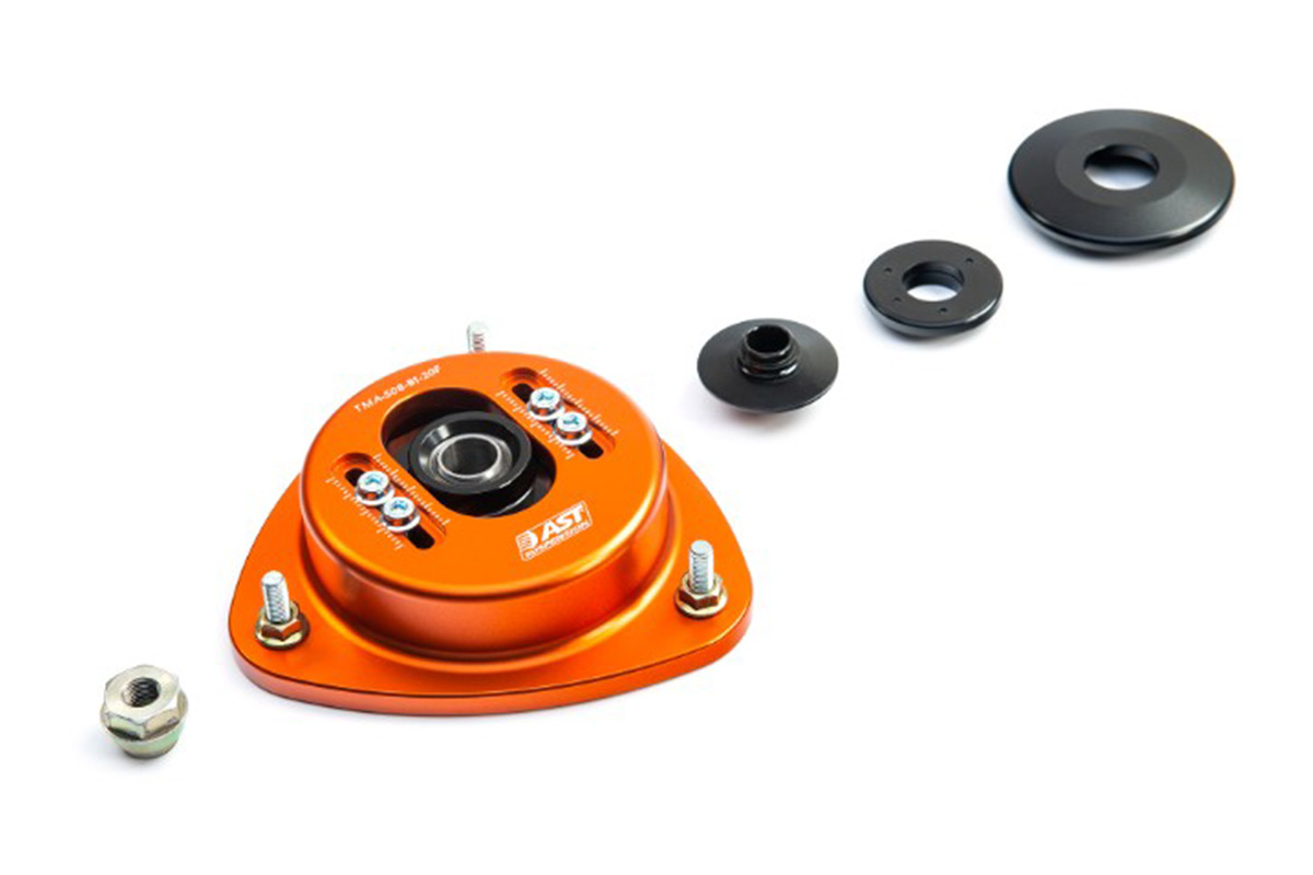 With a stock suspension system, there is an insufficient amount of adjustment for camber because it’s not something that is needed for a stock vehicle. After you’ve installed aftermarket suspension or you are even using stock suspension, being able to aggressively adjust the camber will allow you to fine tune of your car handles and maximum grip, resulting in faster lap times. Increased adjustability is the purpose of AST’s camber plates/top mounts, which are compatible with most coil over systems on the market.