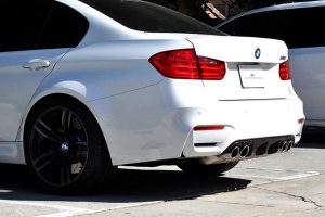 This rear diffuser from AutoTecknic is made from 100% true vacuumed carbon fiber which provides superior durability, better fitment, and a lower weight. Granted, the weight savings compared to the stock diffuser are minimal, but the look truly transforms the back of your F8X. When combined with an aftermarket exhaust that uses larger exhaust tips, the rear end of your M3/M4 will look absolutely killer.