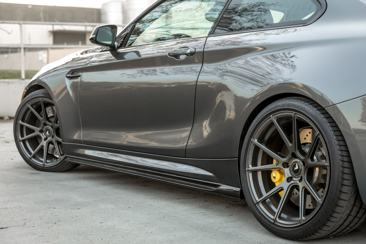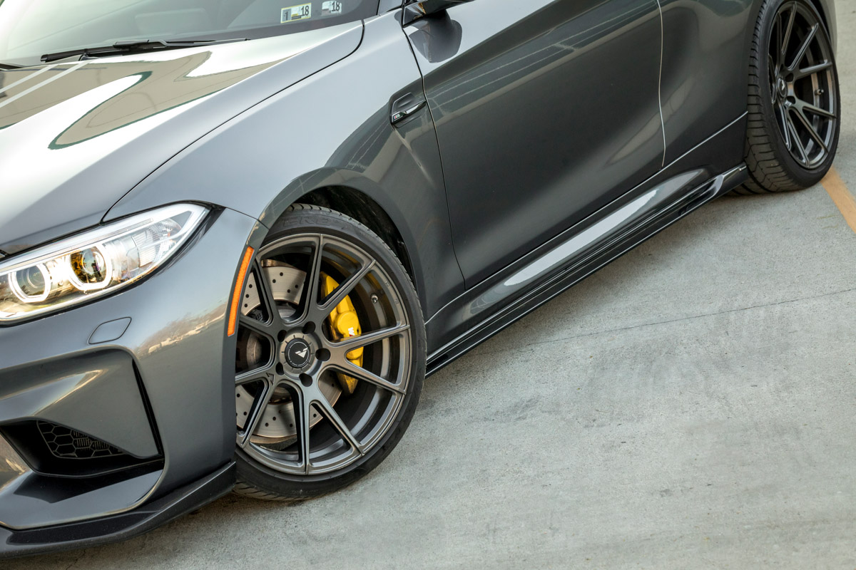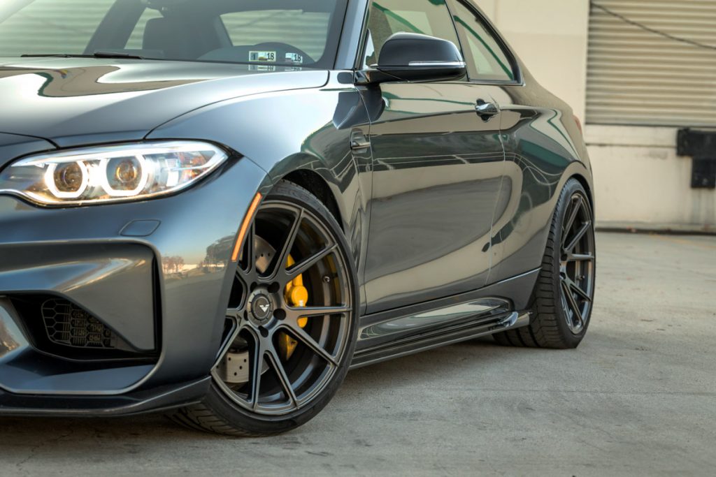 The VRS Aero kit is comprised of four different components: Front lip, side skirts, rear diffuser, and rear spoiler. The whole kit has been designed to look almost like a factory BMW body kit. It’s not too aggressive and in-your-face, but it’s definitely more aggressive looking than the stock M2. With a carbon fiber construction, all the components are lightweight, strong, and look great. When combined with a set of nice Vorsteiner, the look of your M2 will be completely transformed. Be sure to check out the photos below to get an idea of how the VRS Aero kit looks.