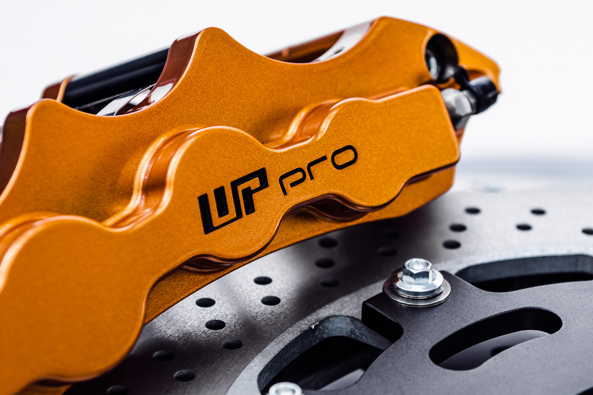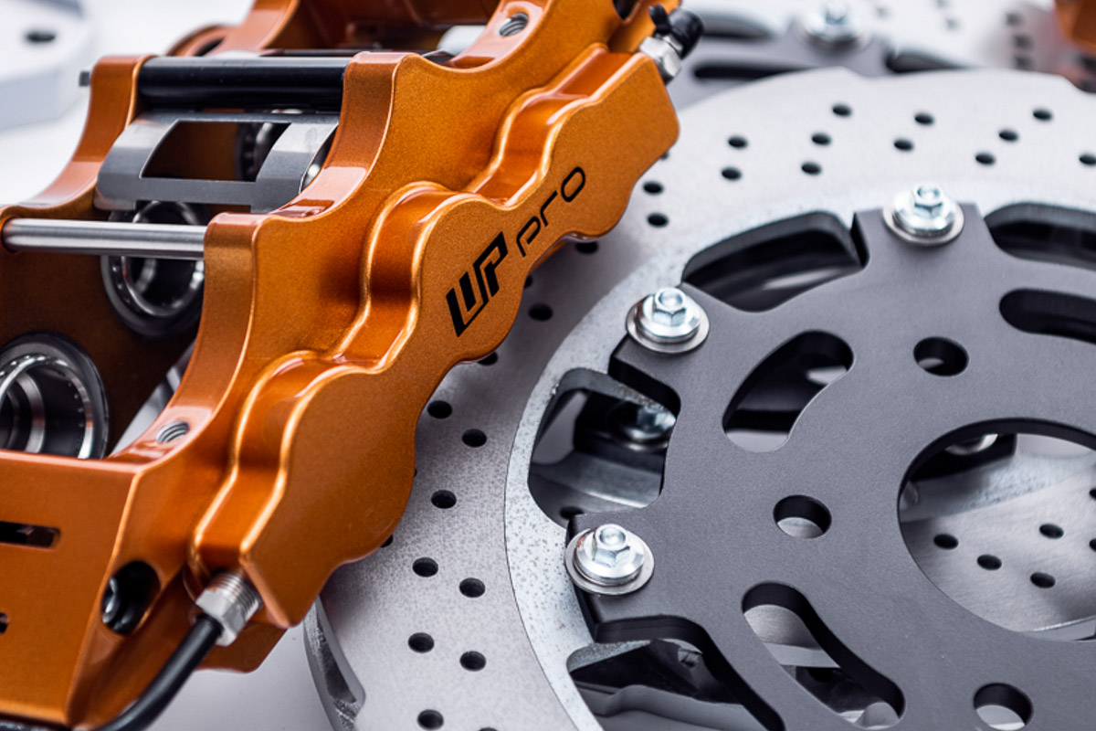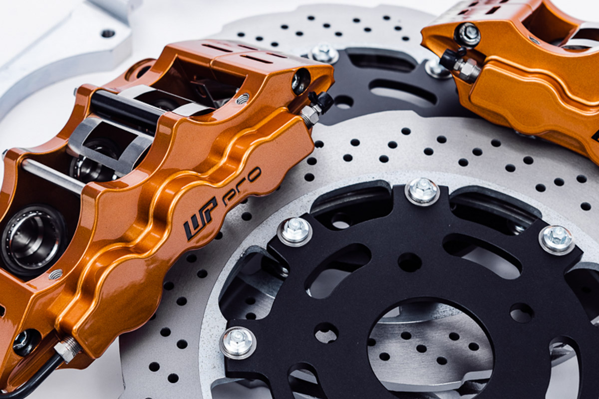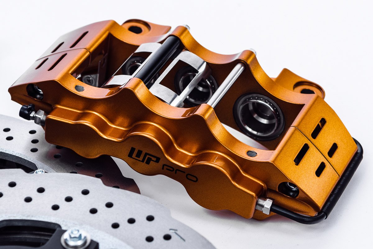 Typically a brake upgrade entails using larger rotors and calipers for improved heat dissipation. WP Pro is well known for their big brake kits, but this kit is different because it is physically smaller than the OEM brakes. Even with that smaller size, a properly designed rotor and large pad/rotor contact patch results in great thermal capacity, reducing the chance of brake fade and providing great braking performance. This drag kit, as mentioned above, is designed for the R35 GTR but it’s designed around the use of 17” wheels. The rotor is 345x30mm which is quite large considering it needs to fit under 17” wheels. The calipers are WP Pro’s well known 6-piston EX6 calipers which prove tons of clamping force and also allow for a very large pad/rotor contact patch.