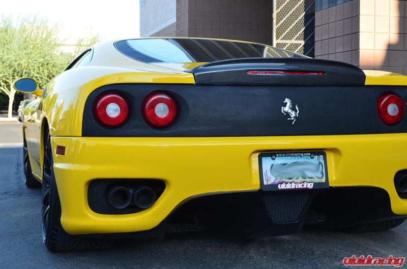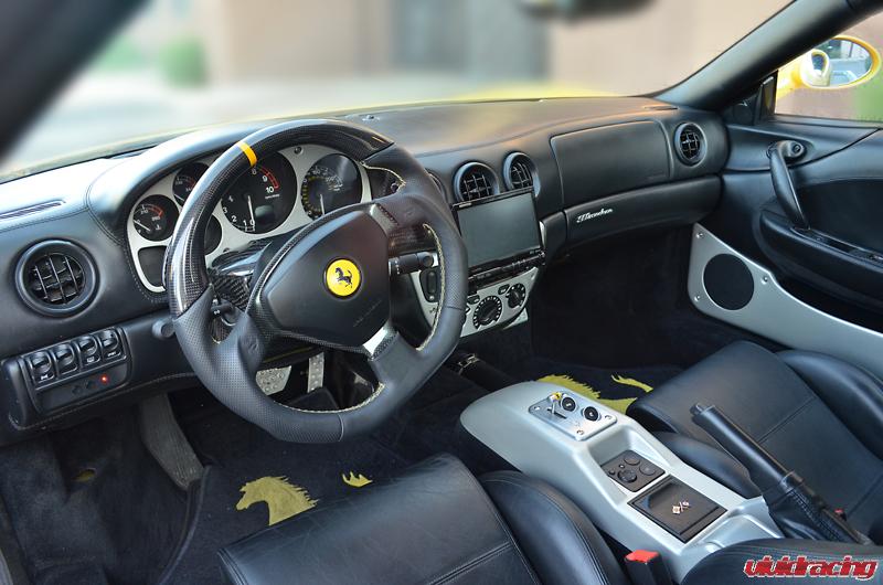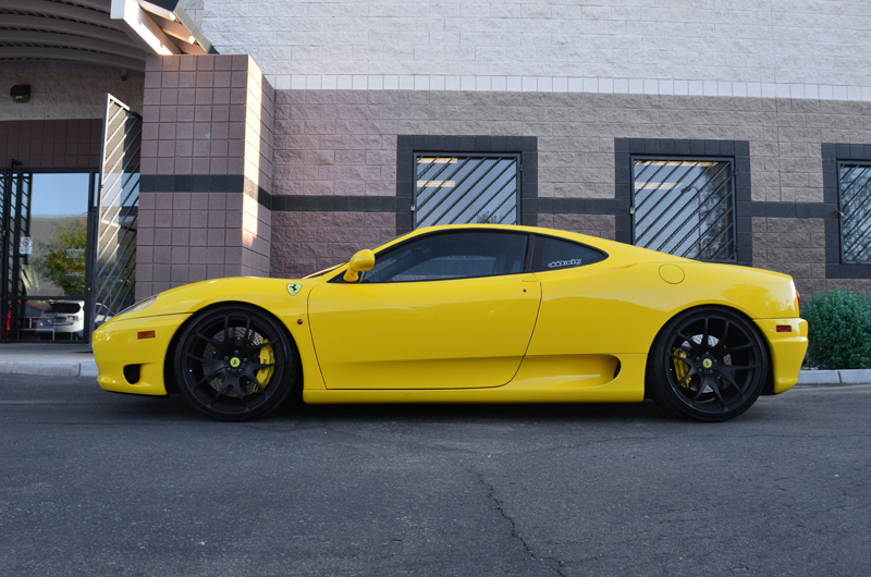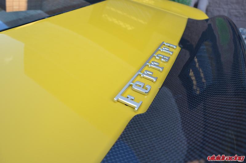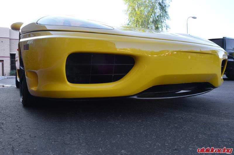 Yes I probably just got that song stuck in your head now… But without further interuption, I give you the super clean and sleak, Project Ferrari 360. The matte gray carbon vinyl wrap has come off and the Ferrari yellow paint has been polished up. Besides the awesome Radenergie 20 inch wheels, the car is sitting strong with a set of Moton double adjustable coilovers. The front and rear of the car have some new aero additions from Agency Power. The rear add carbon fiber spoiler, dubbed “the Scud Spoiler”, gives the rear decklid a more flowing style. Up front is the newest piece from Agency Power. This carbon fiber lower bumper spoiler fills in the toothless gap that the Ferrari 360 looks like it has. Mounting flush to the contour of the factory bumper, it provides a subtle aggressiveness that the car needed.