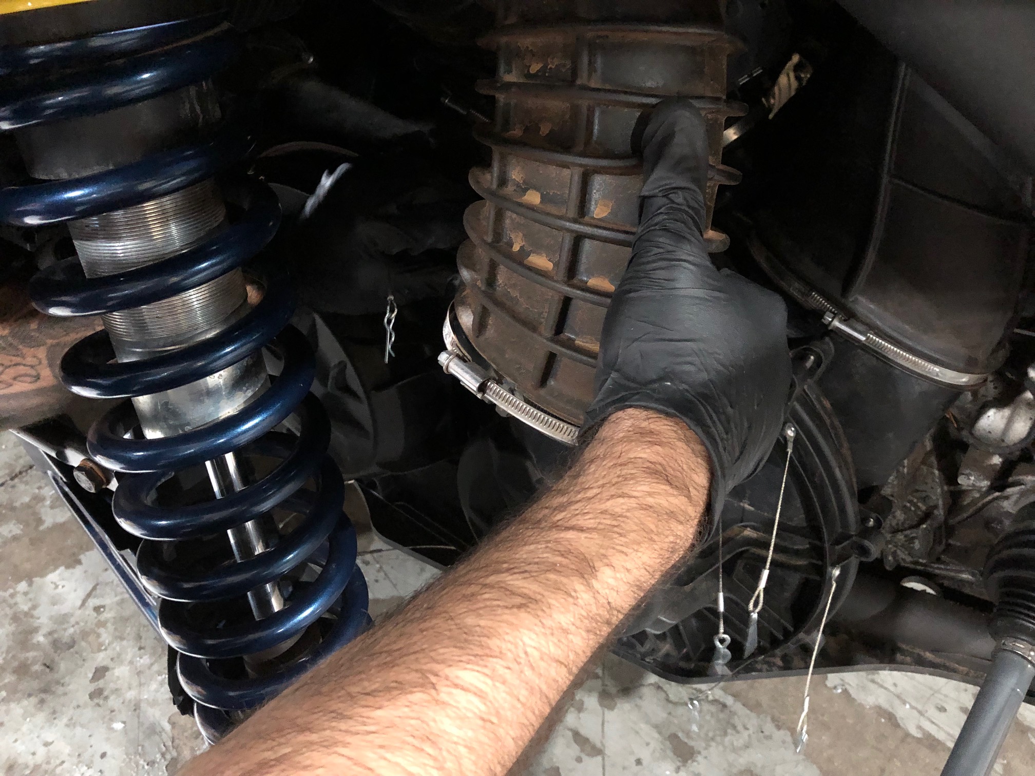 Its inevitable that you will break or shred a belt on your UTV and especially with the high horsepower of the Can-Am X3 Turbo. Getting the clutch cover off with a phillips head screwdriver 1 at a time can be a pain in the arse. To make swapping belts easier in a hurry, Agency Power has this clutch cover quick release pin kit available. Much like any pin kit for any product, you simply pull the pin! Each kit includes enough hardware to install the pin kit to your X3. You thread in the post to the vehicle side in place of the screws. Then each steel wire that the pin connects to is riveted in place. This allows you to easily pull the pin and not lose it. The clutch cover slides easily on and off the posts to easily access the belt.