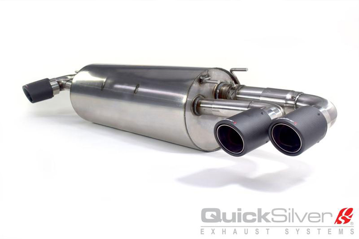 This new exhaust from Quicksilver feature stainless steel mandrel bent tubing throughout with quad carbon fiber tips. Compared to the OEM exhaust rear section, the Quicksilver exhaust is significantly lighter. The integrated valve system on the Quicksilver exhaust works perfectly with the OEM valve system, allowing you to change the volume of the exhaust on the fly!