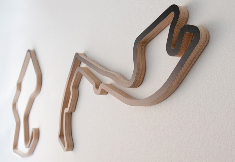 We are a firm believer that your vehicle is an expression of your personality. From the color wheels you choose, to the aero kit components, and even the sound level of your exhaust, these are all traits of your self expression. So when Russell from Linear Edge contacted us to view his products, we were quite impressed. So what is Linear Edge? All I can say is, amazing wall art of your favorite race tracks from around the world made of high quality Baltic birch plywood and laminate. The picture below says it all. Whether you are a fan of F1, MotoGP, or even drive some of the favorite tracks like Laguna Seca, Mid-Ohio, or even Road Atlanta, these tracks are a great piece for your home or office. We encourage you to take a look at all the tracks available for sale in our Lifestyle Section here (products online 3/29/11).