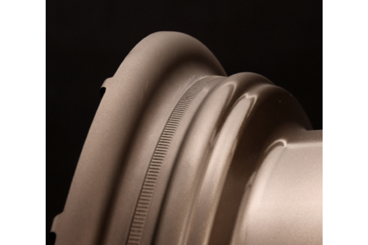 - Embossed Machining: The spoke side machining logo by the patented technology AMT is intentionally engraved before painting for an embossed finish. By carving on the sides of the spokes, which cannot be achieved by casting, we have created a design with a twist that casually asserts individuality.