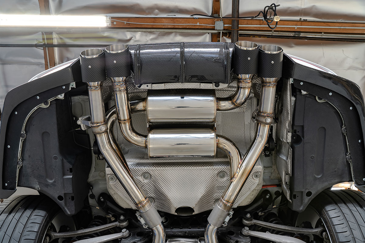 They construct the system from high-quality T304 stainless steel, with hand-welds throughout. The electronic valve system integrates with the OEM system, keeping all OEM exhaust features. The tips are available in stainless silver chrome, stainless black chrome, burnt stainless, titanium burnt, and dry carbon fiber.