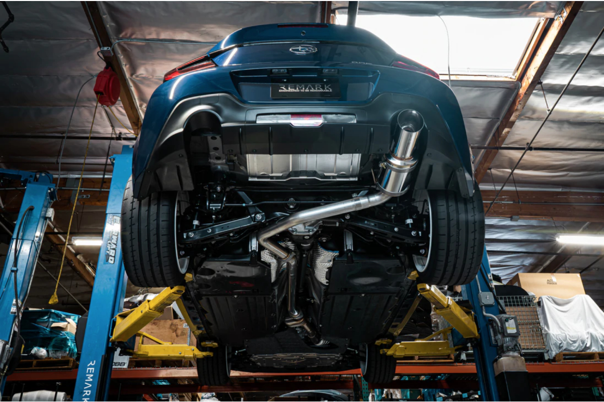 The 2022 Toyota GR86 / Subaru BRZ is a track-proven sports car made for precision drivers and purists who are looking for good looks, high performance, tuned suspension, and classic thrills in a lightweight package. Many owners still look to the aftermarket to take their vehicle to the next level and prep it further for the track. A free-flowing aftermarket exhaust is one of the best ways to squeeze out some of that potential power that is there with the restrictive stock system. REMARK, one of the top exhaust manufacturers out there, already offers an R1-Spec Exhaust for the previous 2012-2021 models of the GR86 and BRZ. Now, the esteemed brand is pleased to offer a new R1-Spec Single-Exit Catback Exhaust System for the 2022 Toyota GR86 and Subaru BRZ models. It’s important to note that this new system will not fit the 2013-2021 Scion FR-S / Toyota 86 / Subaru BRZ.