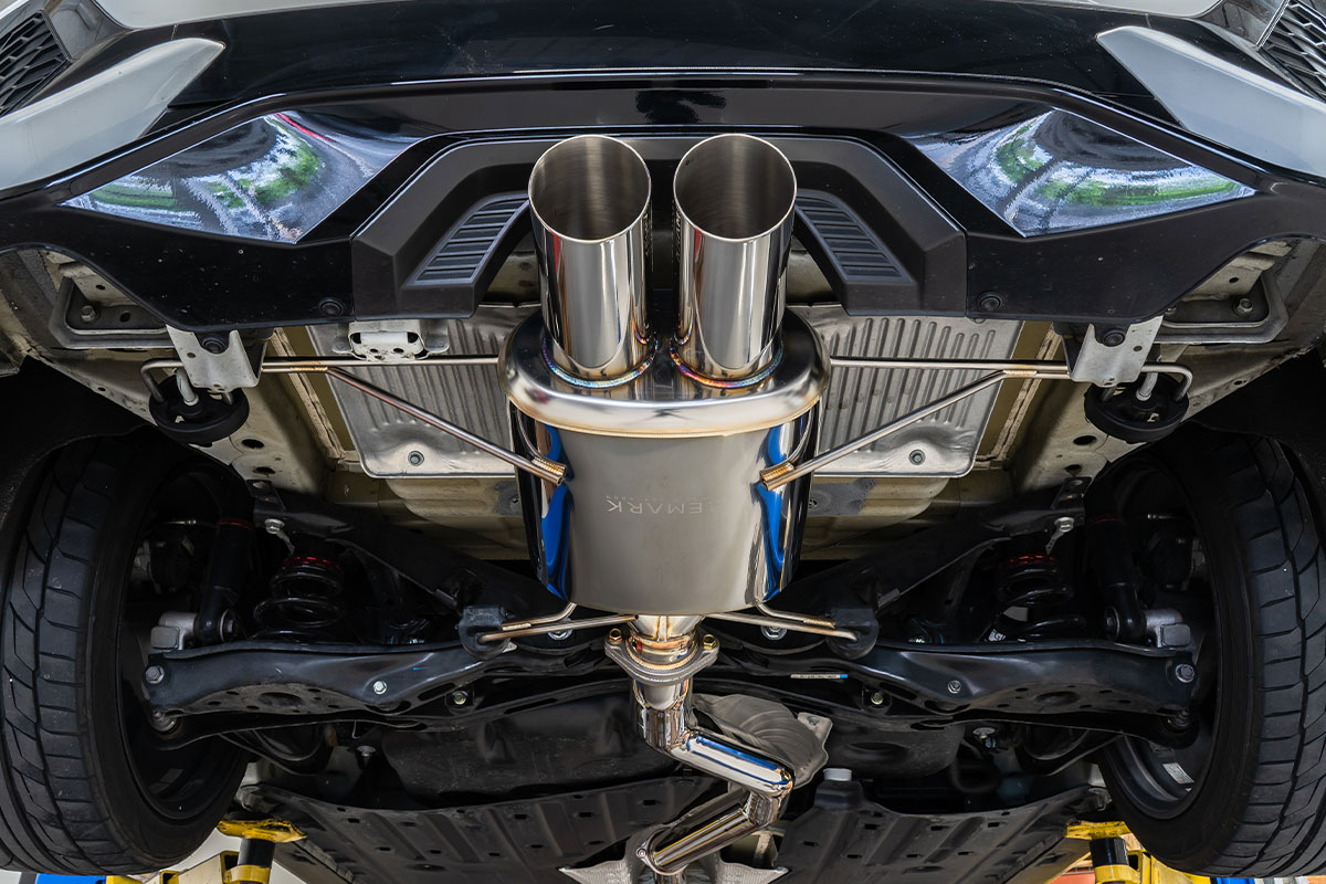 By increasing exhaust piping diameter to 3-inch, the Remark catback exhaust flows significantly more air than the OEM exhaust system. The increased flow allows the turbo to spool up quicker and ultimately create more boost, resulting in more power.