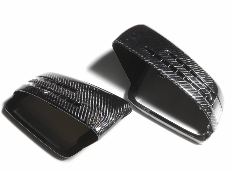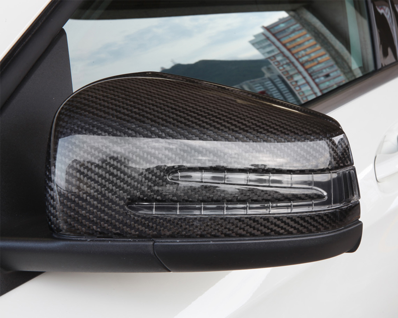 Replace your original plastic color mirror cover with this carbon fiber version. Item is carbon laminated on original mercedes products.