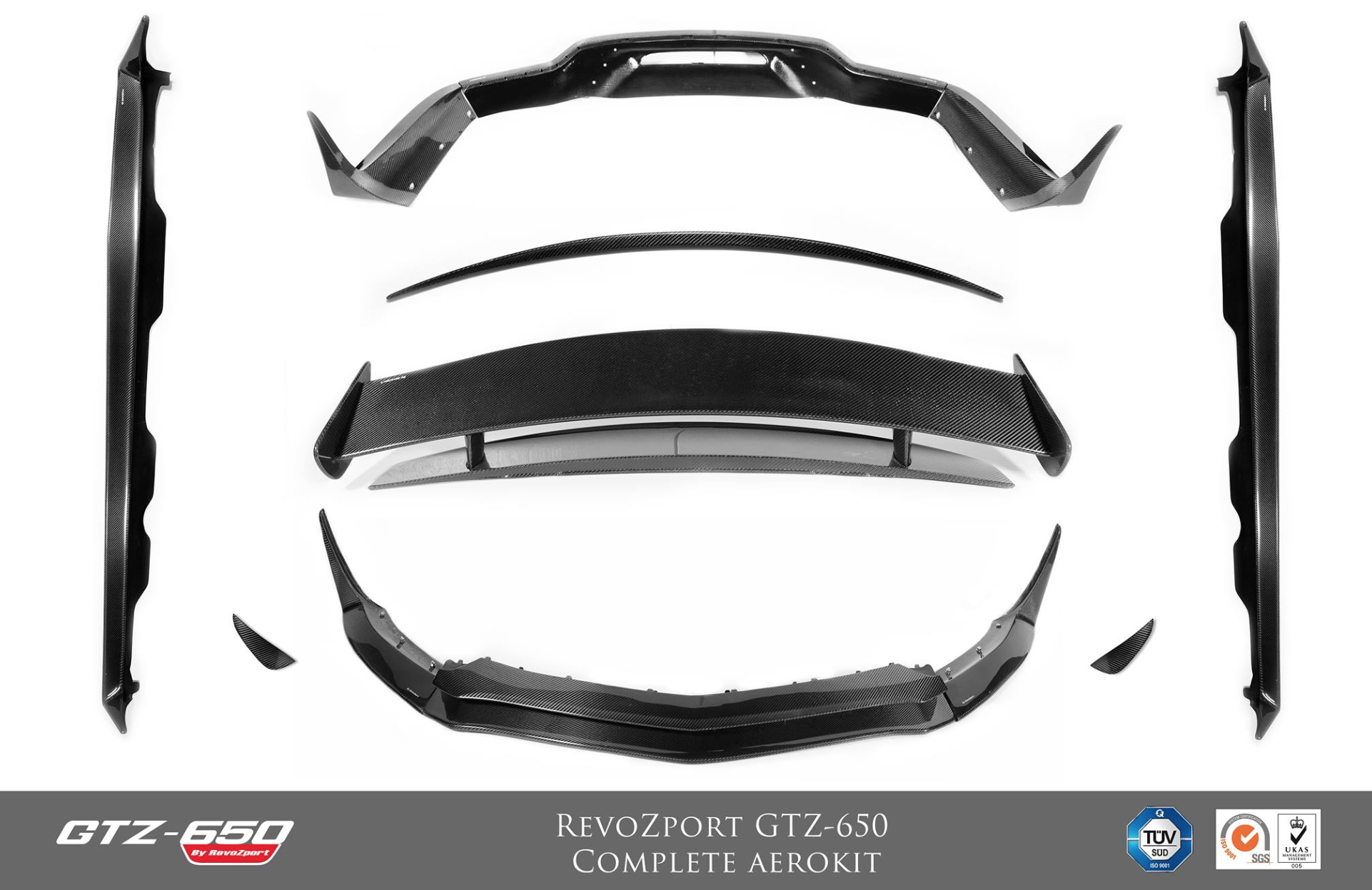 With such performance, extra downforce and grip is achieved by a newly designed add-on aerokit for the GT and GTS owners. The RevoZport GTZ-650 is a newly designed add on aerokit for the GT and GTS owners. Designed with CAD and simulated by CFD, this aerokit create 20% more front and rear downforce together with subtle improvements to styling. This RevoZport AeroKit is inspired by the SLS Black series and features more aggressive front splitters and canards at the front. Meanwhile, at the rear, the customer can choose to have a duckbill trunk lip spoiler or fixed GT wing for extra down-force. Carbon kevlar (normally used on bulletproof vest) is used for front add-on splitter to endure any scratches and all other components are produced in carbon fiber.