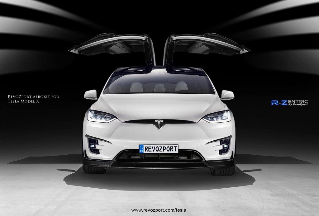 Revozports carbon fiber components are great way to update the styling and make your Tesla stand out from the rest. With the success of their model S platform, they have now started to under go development for the Model X. The new gulwing style super CUV from Tesla has been an eye catcher since its debut at the auto show. Even though the model X had a rough initial launch, now that the bugs are fixed they are selling like hot cakes. Revozport has released rendering and initial scans of the new car which are shown below. An entire body kit including enlarged fenders and front / rear splitters and diffusers are in the work.