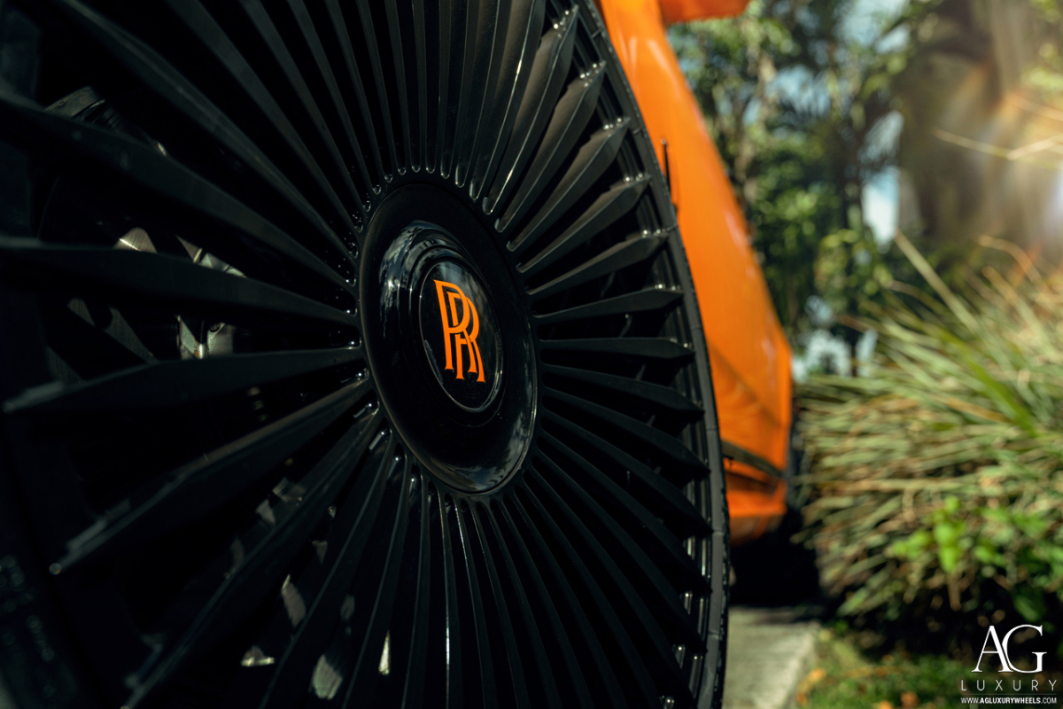 The AGL45-RR monoblock wheels are built from aerospace-grade 6061-T6 forged aluminum for optimum strength-to-weight ratio and unmatched performance. They are also precision CNC produced to your personal preference for any custom application while remaining compatible with TPMS and OE mounting hardware. This particular Rolls-Royce Cullinan is featured with 24×10 AGL45-RR monoblock wheels in a stunning gloss black finish that complements the bright orange exterior beautifully. Take a look at the breathtaking photos of this stunner with its new shoes in the gallery below.
